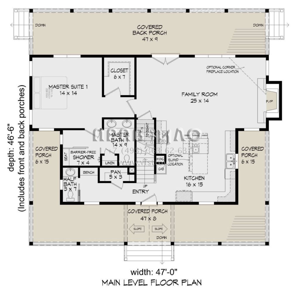 Поскольку этот проект разрабатывался иностранными архитекторами, для строительства дома требуется переработка проекта под действующие в России нормы. Данные визуализации проекта представлены для ознакомления с концепцией проекта. Проект разработан американским архитектурным бюро и представлен America's Best House Plans.