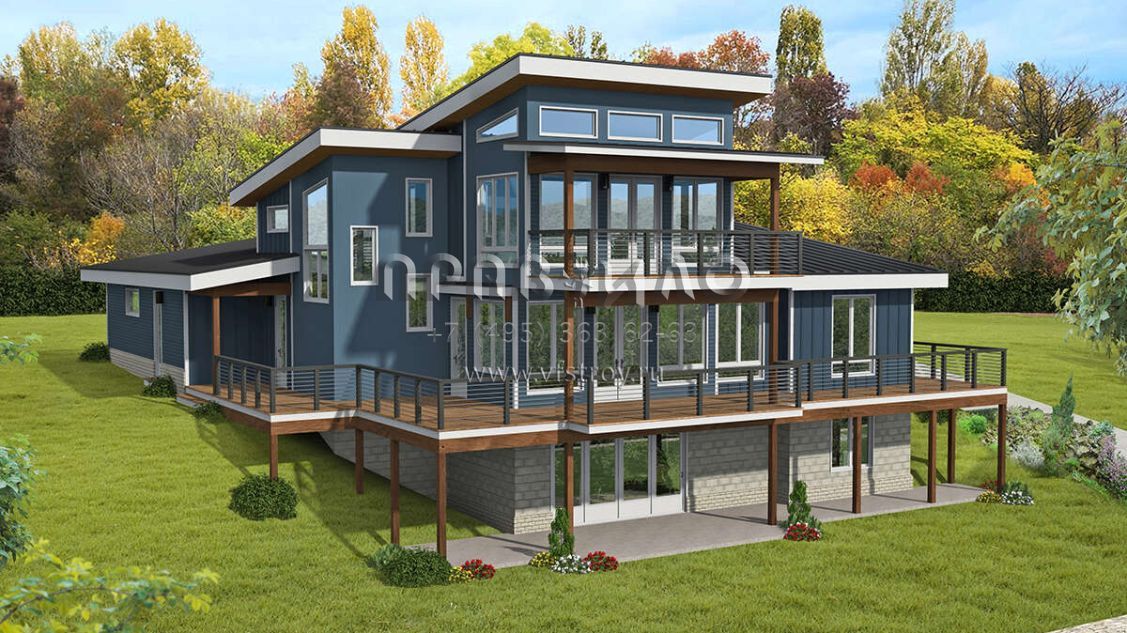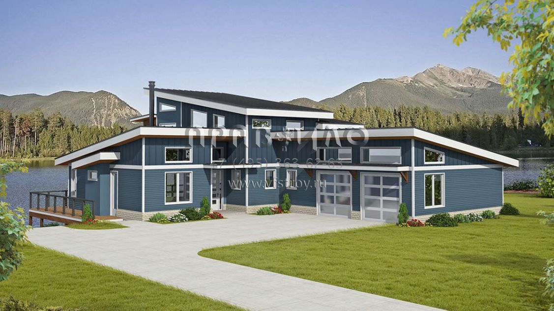 Проект двухэтажного дома с гаражом на две машины в современном стиле S5-227 (940-00512)