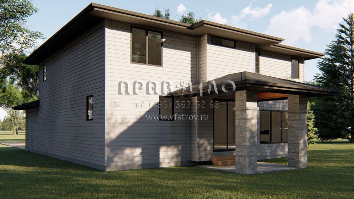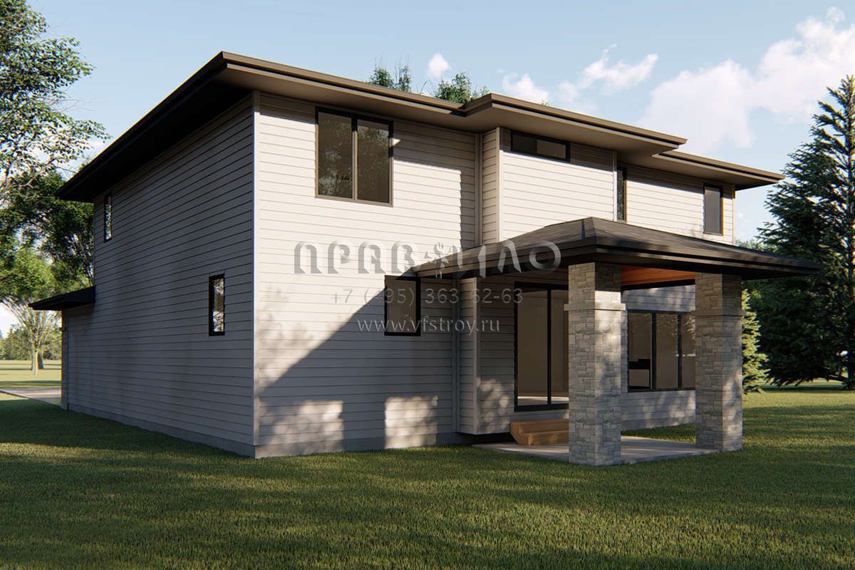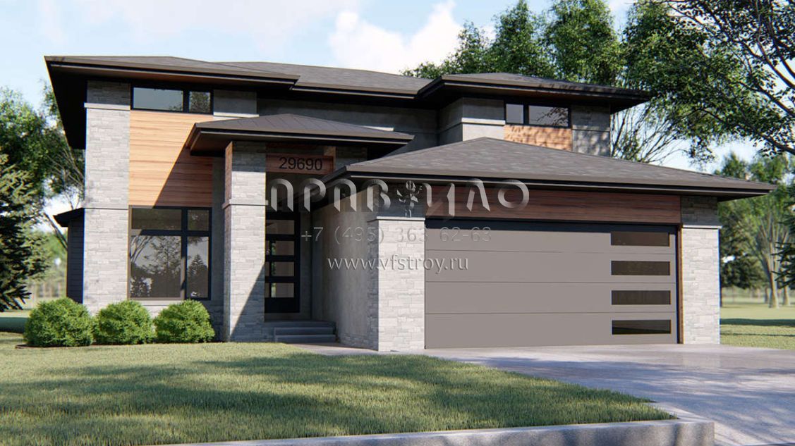 Проект двухэтажного дома с гаражом на две машины в стиле Райт S5-227 (963-00345)