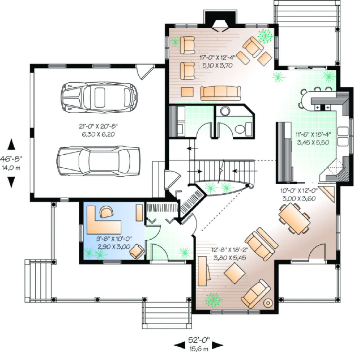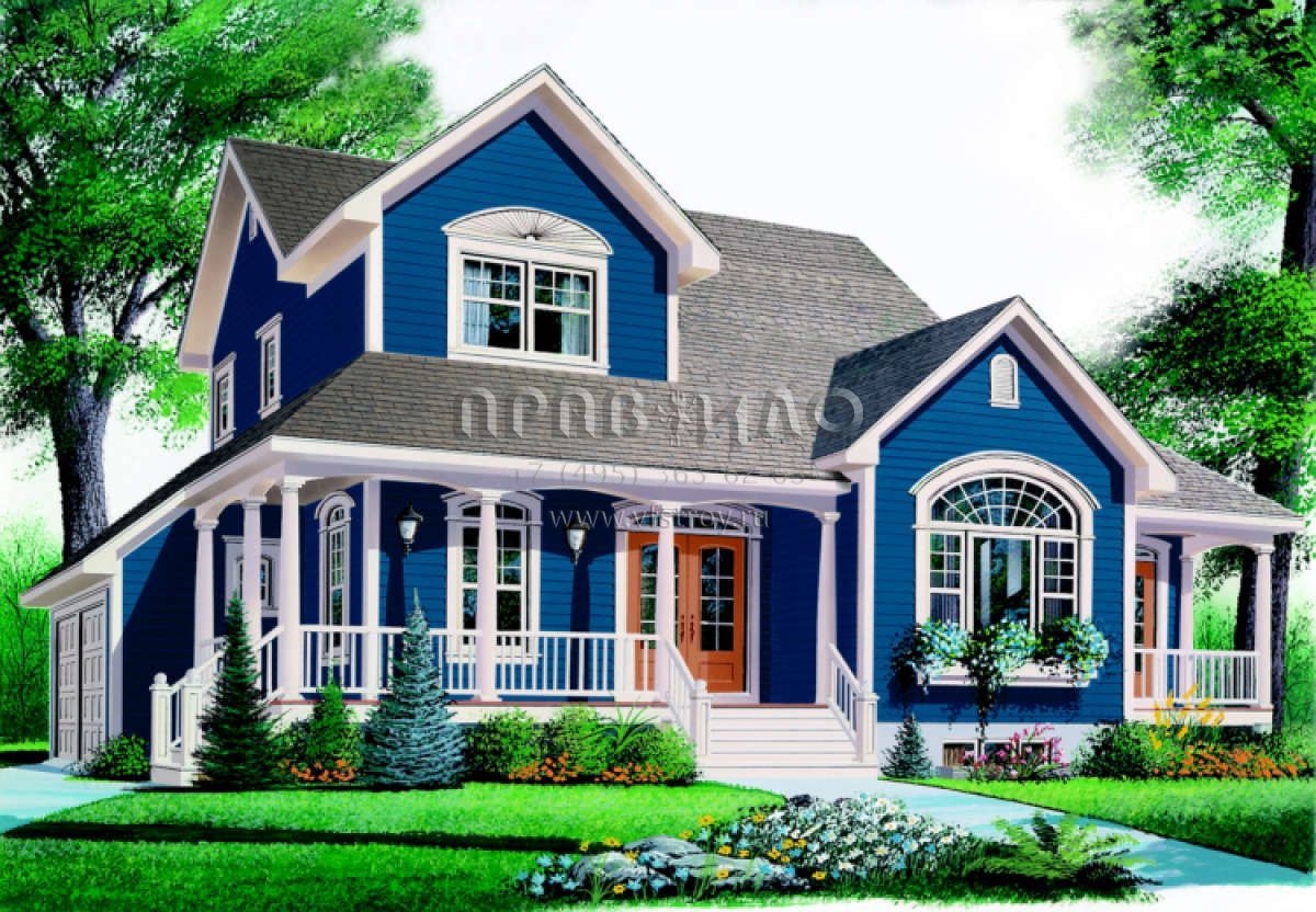 Проект двухэтажного дома с гаражом на две машины в стиле Ранчо S5-228 (034-00082)
