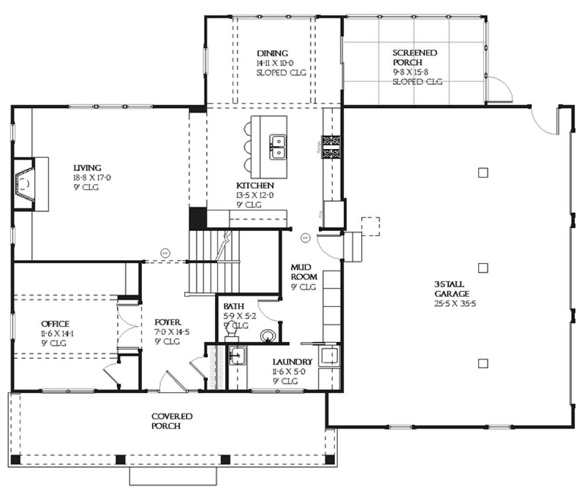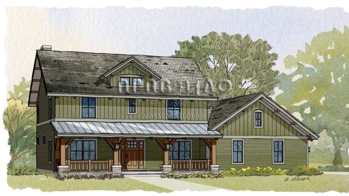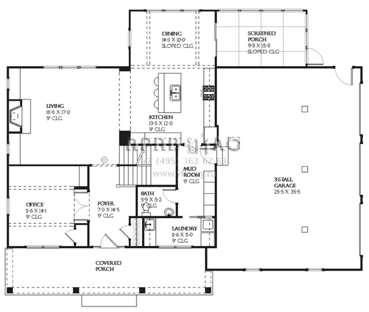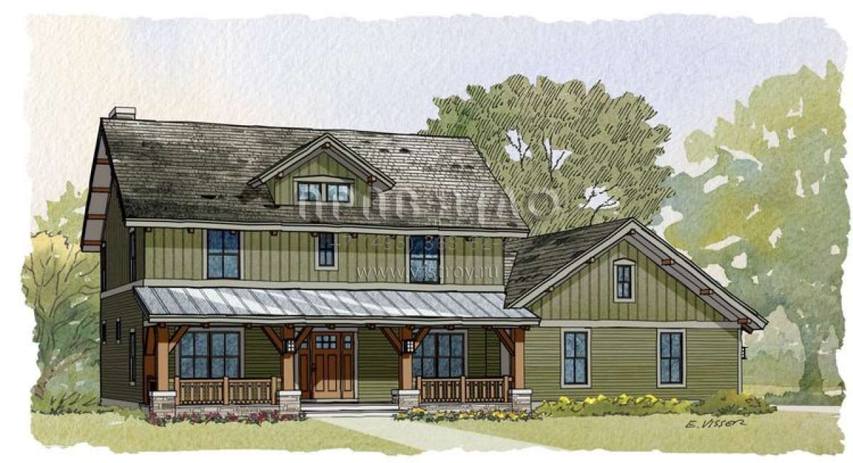 Проект двухэтажного дома с гаражом на три и более машин в стиле Ранчо S5-228 (1637-00075)