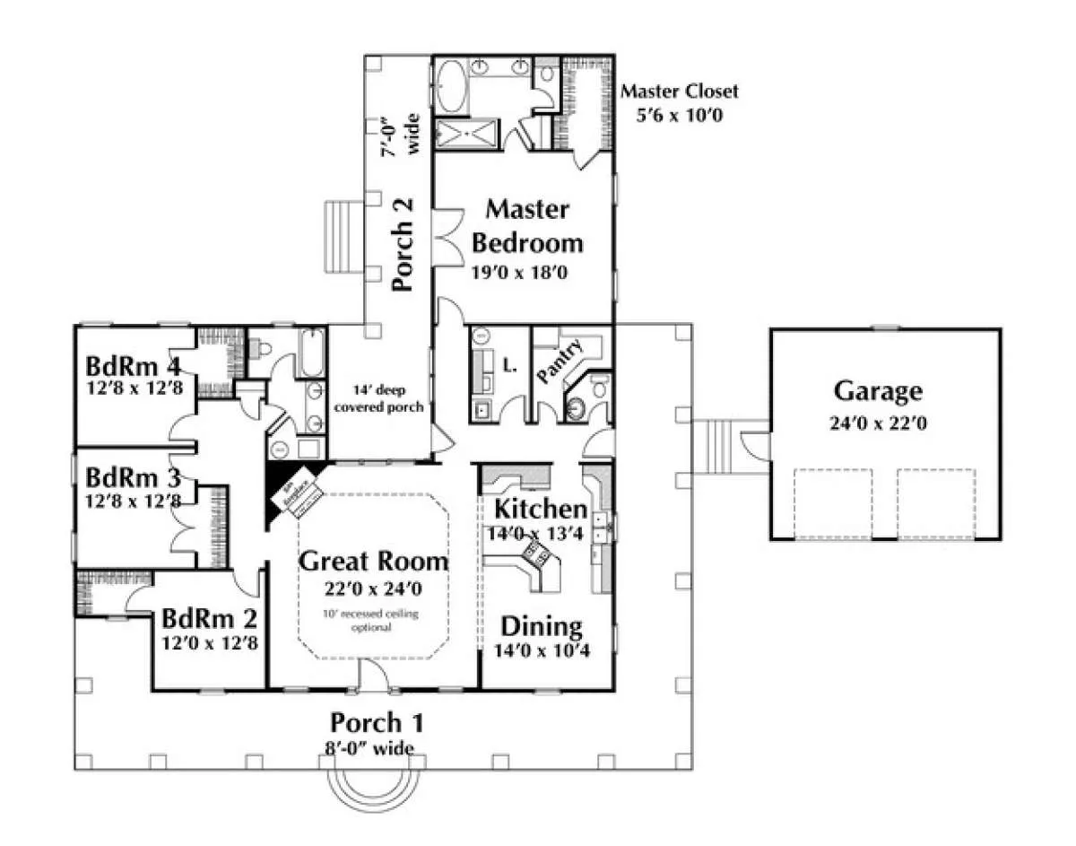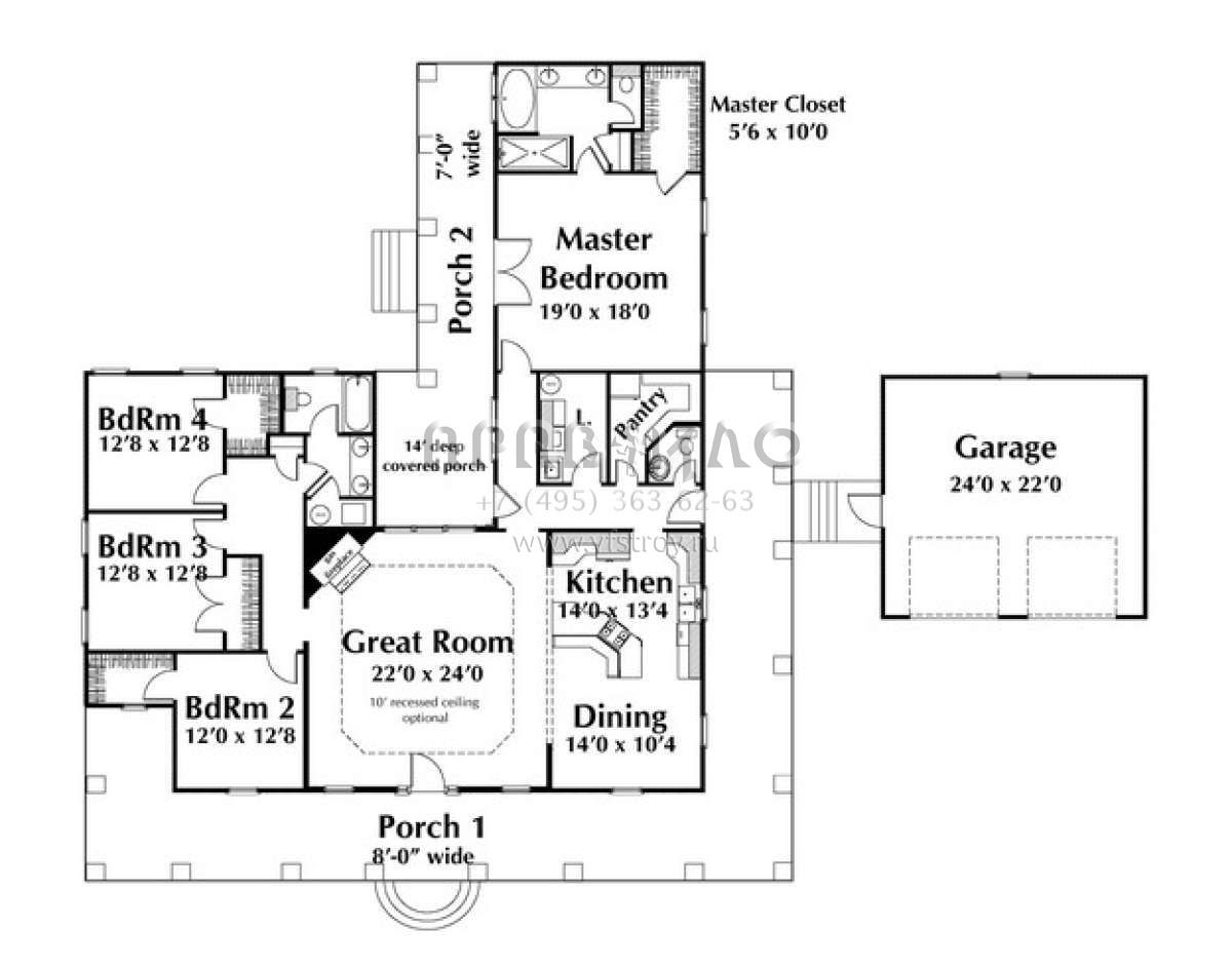 Проект одноэтажного дома с гаражом на две машины в стиле Ранчо S5-228 (1776-00076)