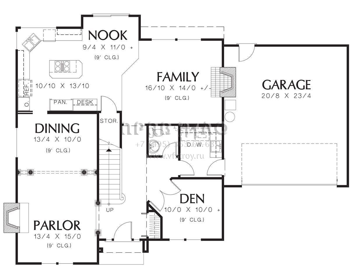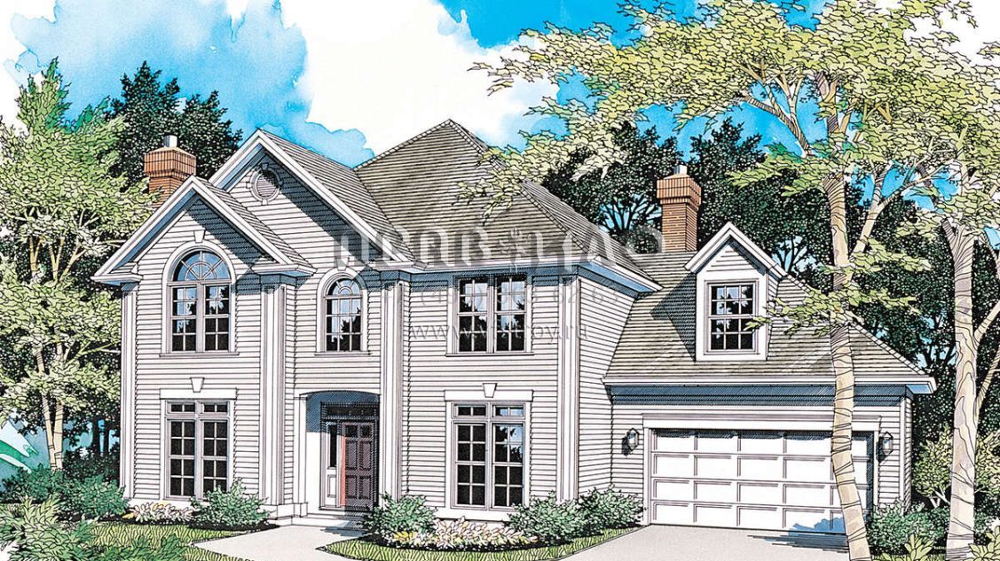 Проект двухэтажного дома с гаражом на две машины в стиле Ранчо S5-228 (2559-00423)