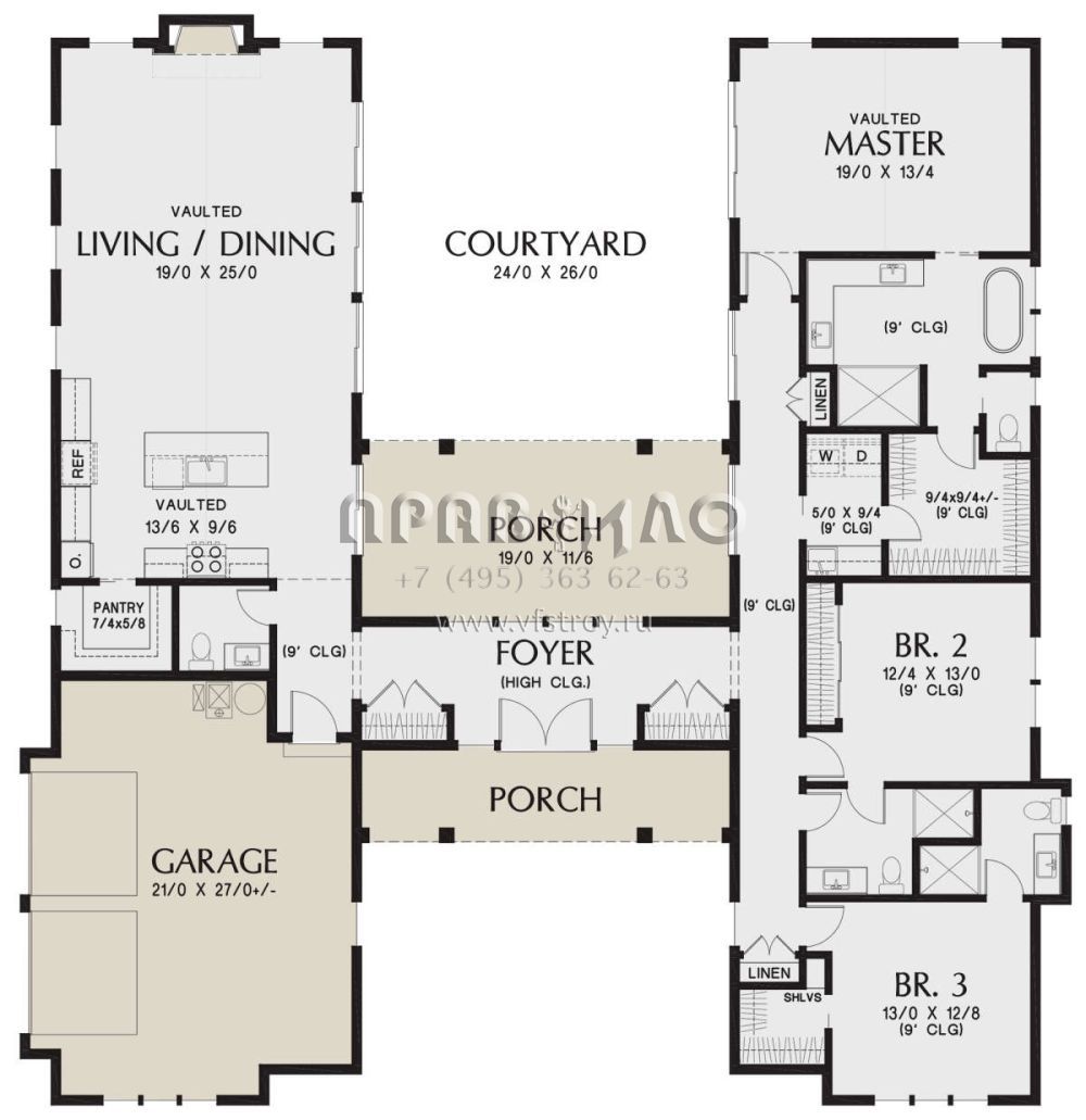 Проект одноэтажного дома с гаражом на две машины в современном стиле S5-228 (2559-00924)