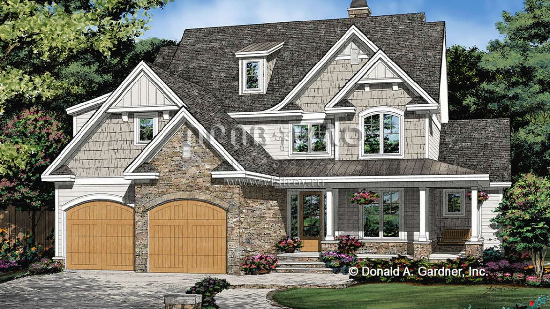 Проект двухэтажного дома с гаражом на две машины в американском стиле S5-228 (2865-00088)