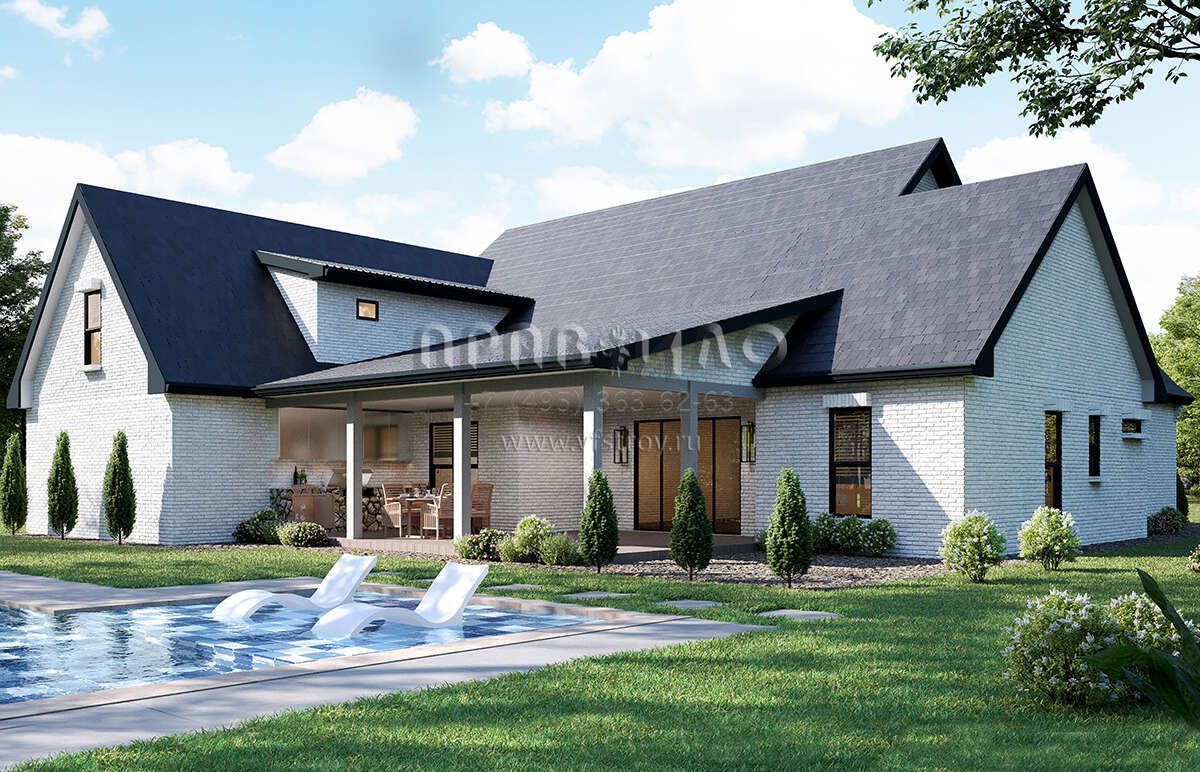 Поскольку этот проект разрабатывался иностранными архитекторами, для строительства дома требуется переработка проекта под действующие в России нормы. Данные визуализации проекта представлены для ознакомления с концепцией проекта. Проект разработан американским архитектурным бюро и представлен America's Best House Plans.