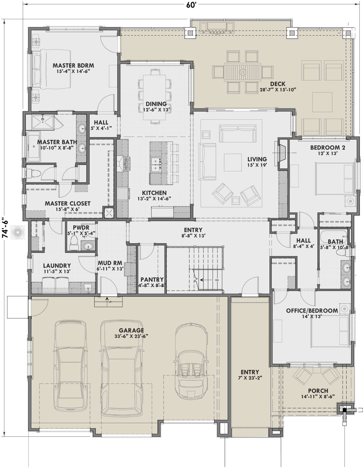 Проект одноэтажного дома с гаражом на три и более машин в американском стиле S5-228 (425-00013)