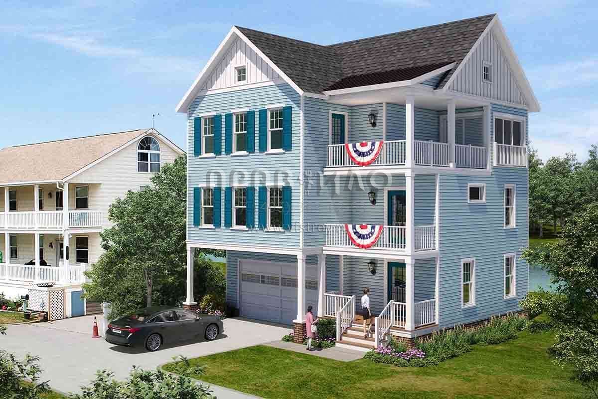 Проект трехэтажного дома с гаражом на две машины в стиле Ранчо S5-228 (4351-00052)