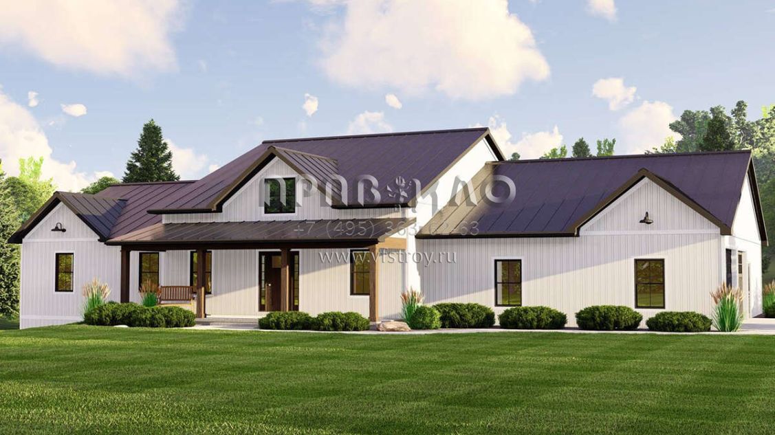 Большая площадь участка позволяет выбрать одноэтажный проект дома, особенно если в семье есть пожилые люди, инвалиды или маленькие дети.