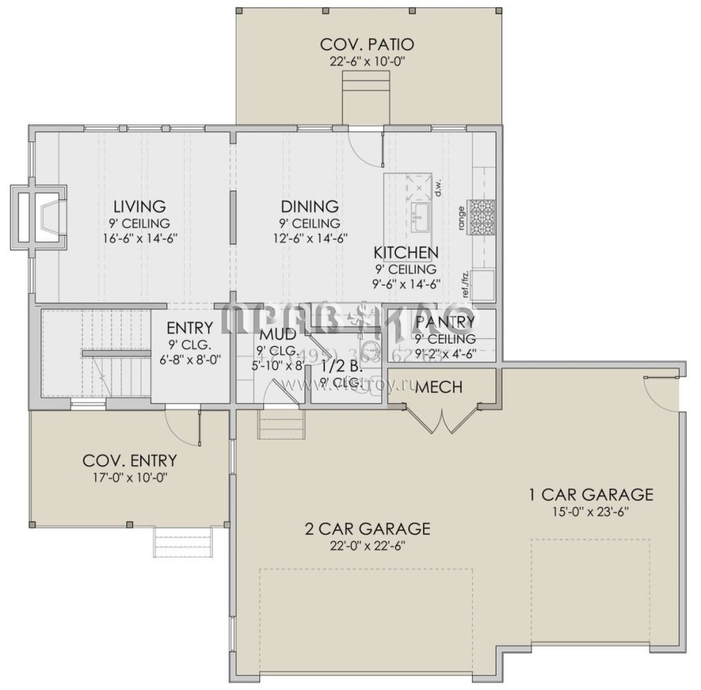 Проект двухэтажного дома с гаражом на три и более машин в современном стиле S5-228 (6422-00017)