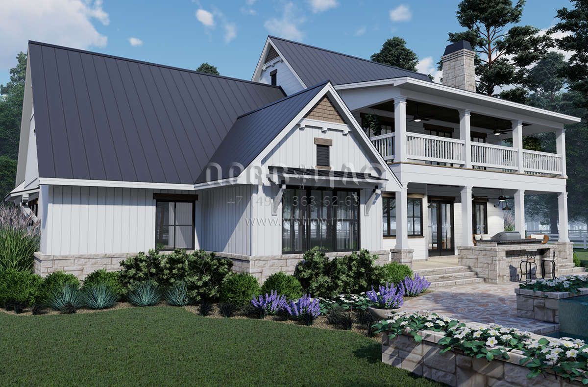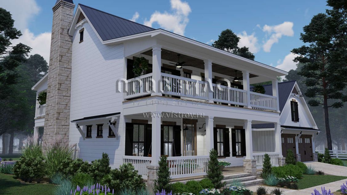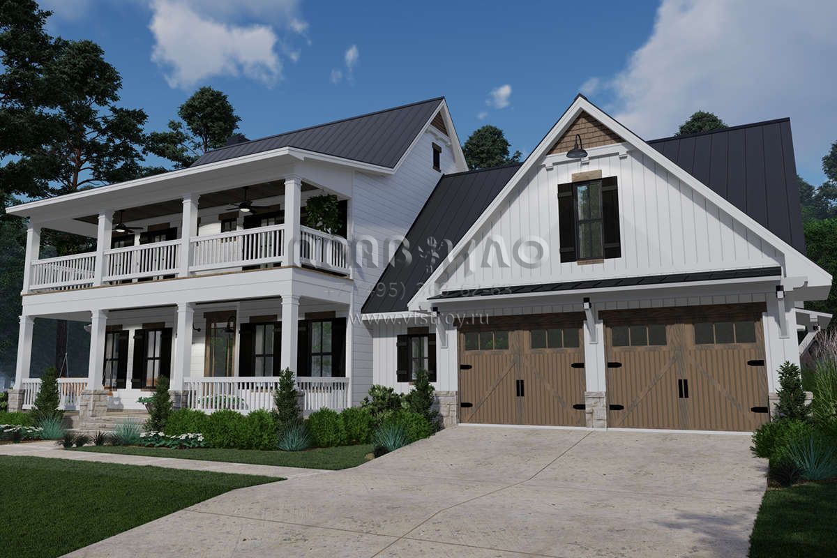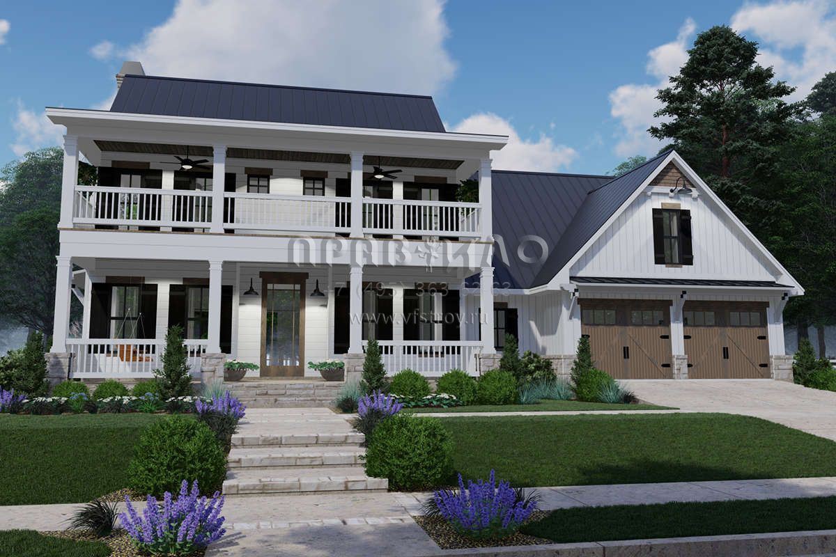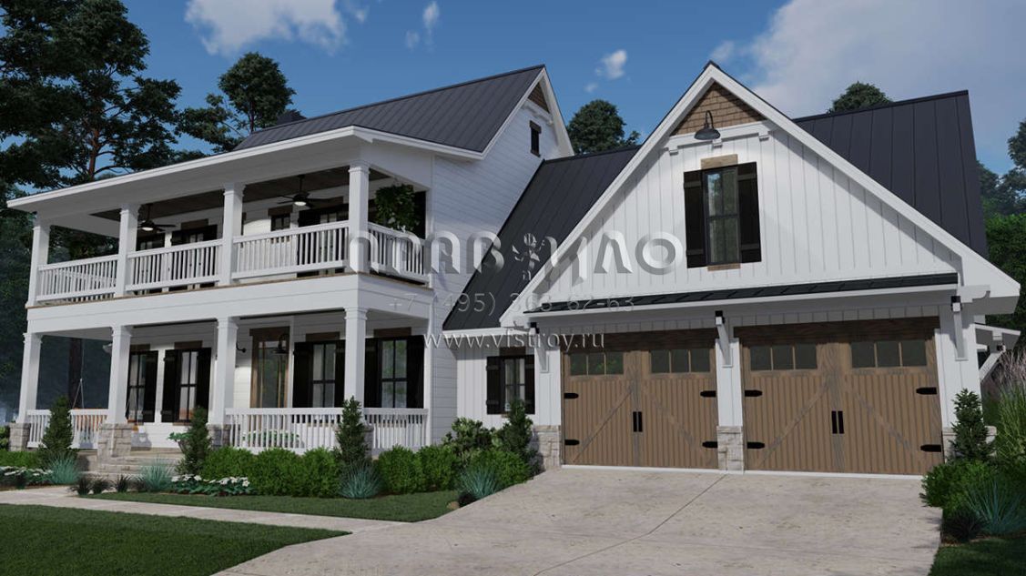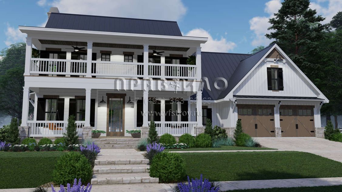 Проект двухэтажного дома с гаражом на две машины в стиле Особняк S5-228 (9401-00100)