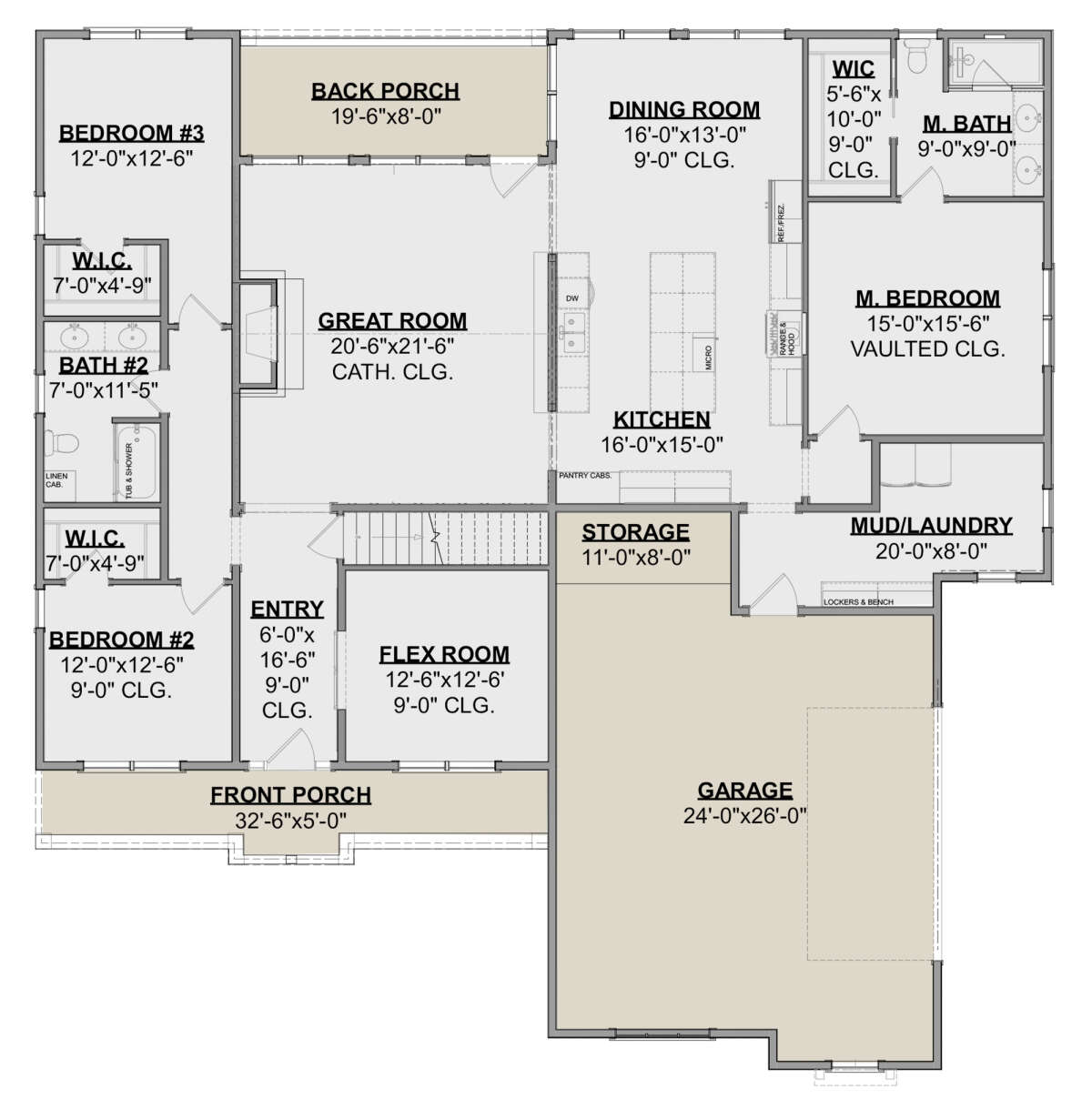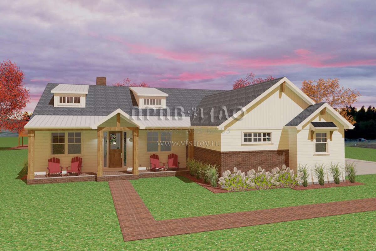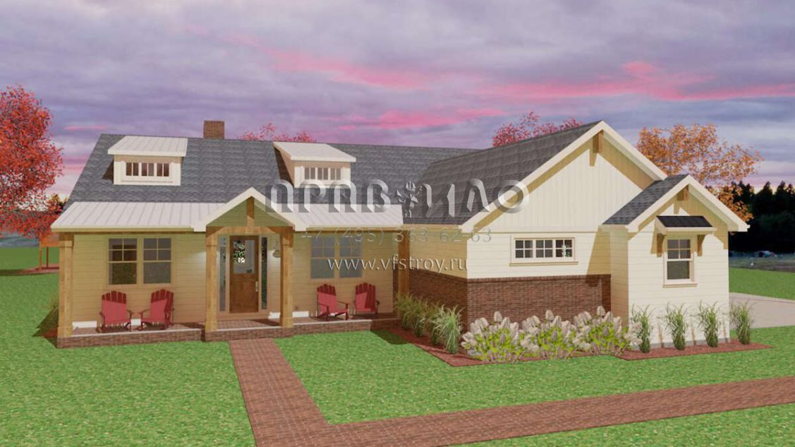 Проект одноэтажного дома с гаражом на две машины в стиле Ранчо S5-229 (1462-00028)