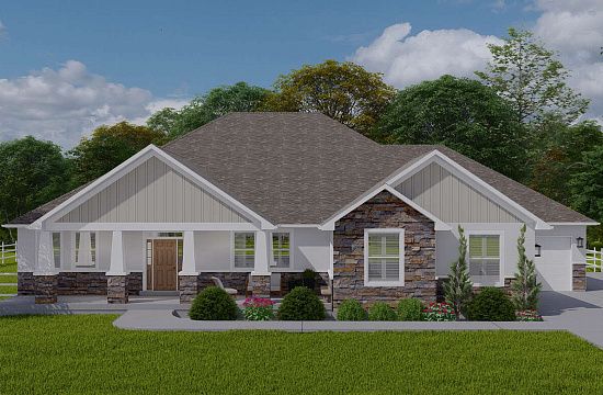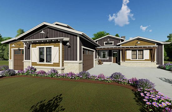 Проект одноэтажного дома с гаражом на три и более машин в американском стиле S5-229 (5032-00017)