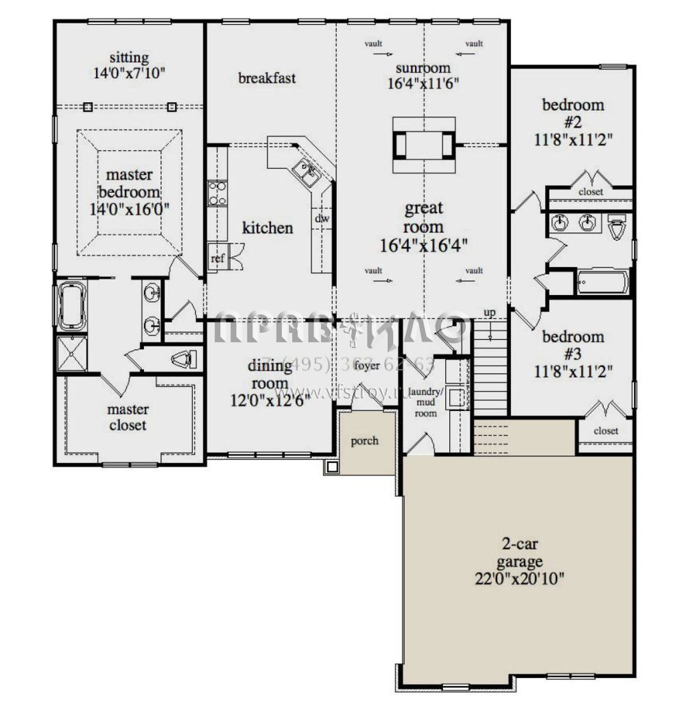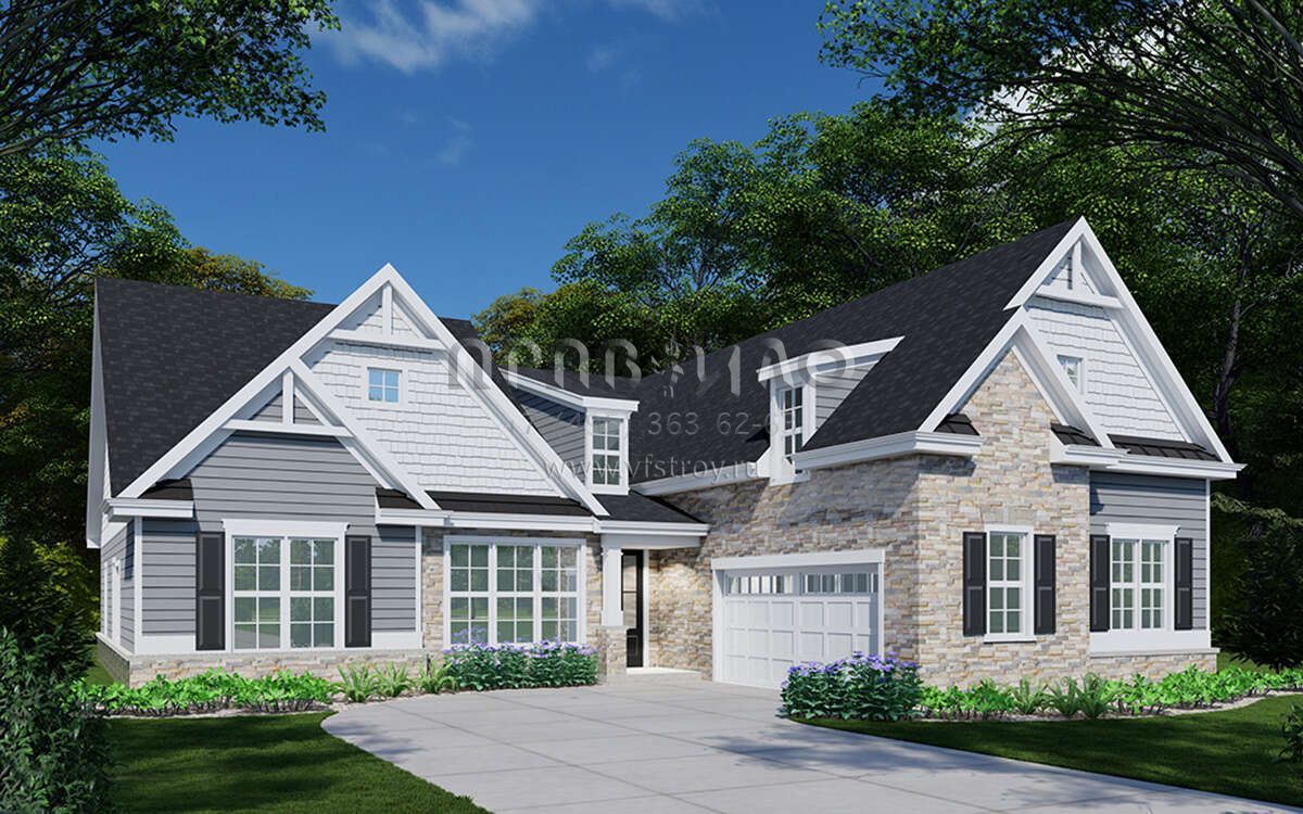 Проект одноэтажного дома с гаражом на две машины в американском стиле S5-229 (957-00083)