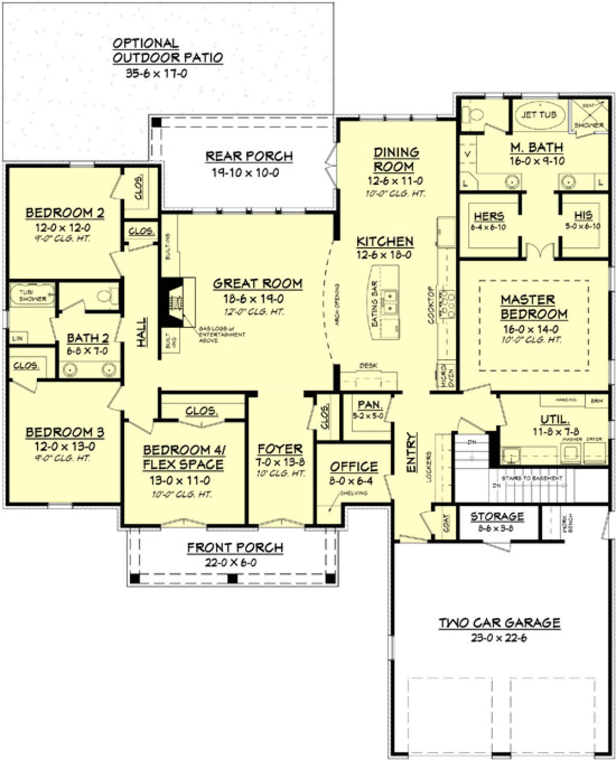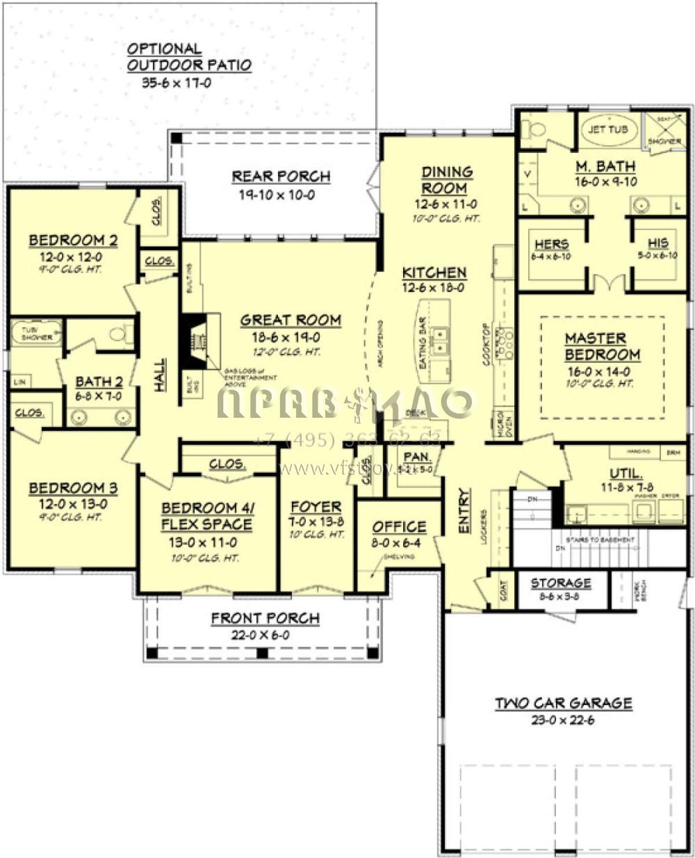S5-230 (041-00105) Это иностранный проект, для которого требуется адаптация под нормы, действующие в Российской Федерации. Вы видите проект дома в стиле Ранчо. В этом доме сочетаются черты сельской постройки и аскетичность лофта. Внутри жильцы смогут проводить время с максимальным комфортом. Обратим внимание, что сейчас на планировках все размеры представлены в футах. Для перевода в метры вам необходимо значение в футах умножить на 0,3048.