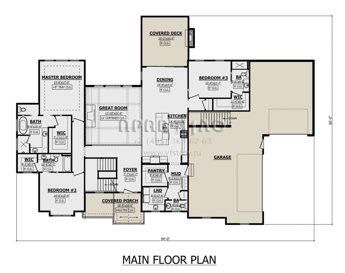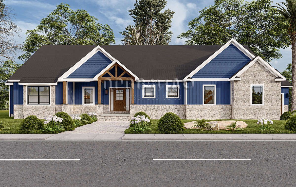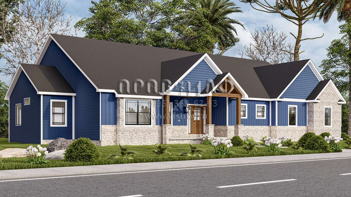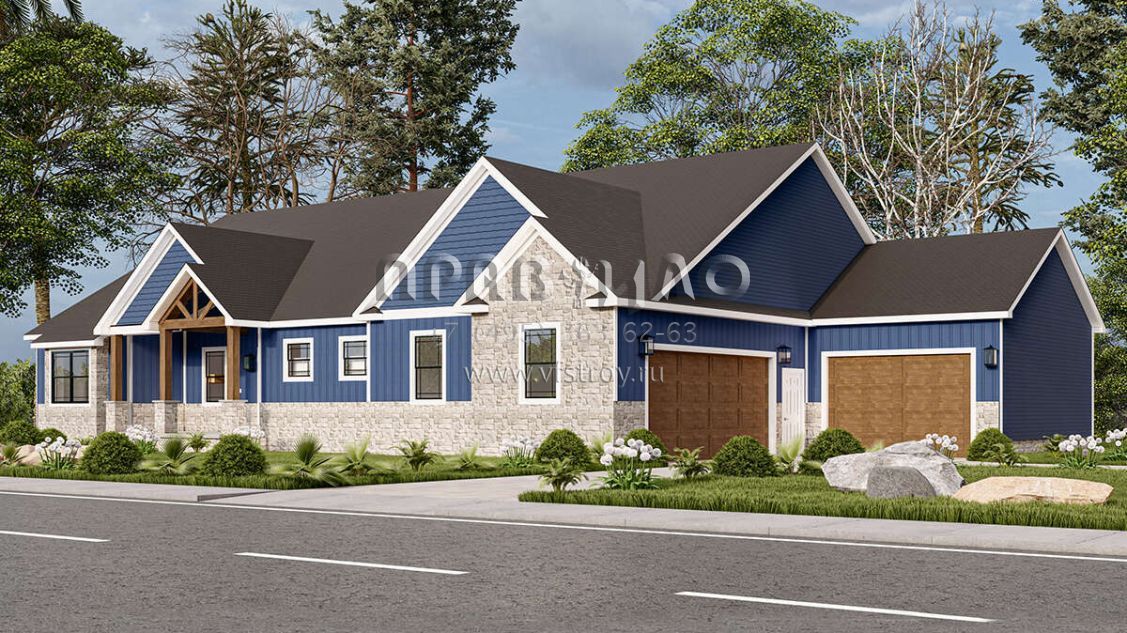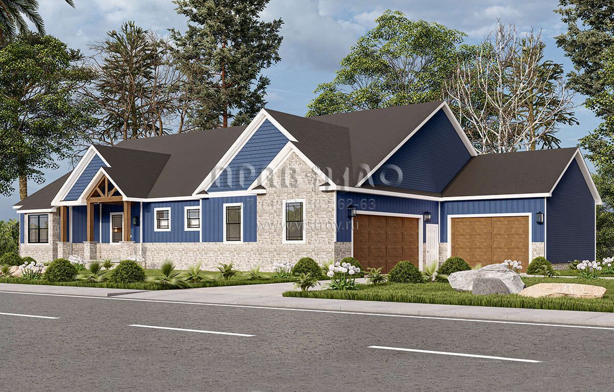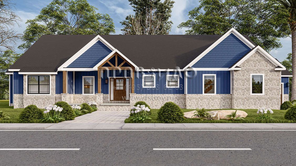 Проект одноэтажного дома с гаражом на три и более машин в американском стиле S5-230 (1958-00018)