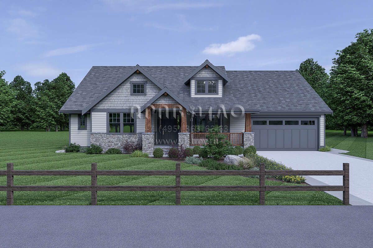 Проект двухэтажного дома с гаражом на две машины в американском стиле S5-230 (2464-00089)