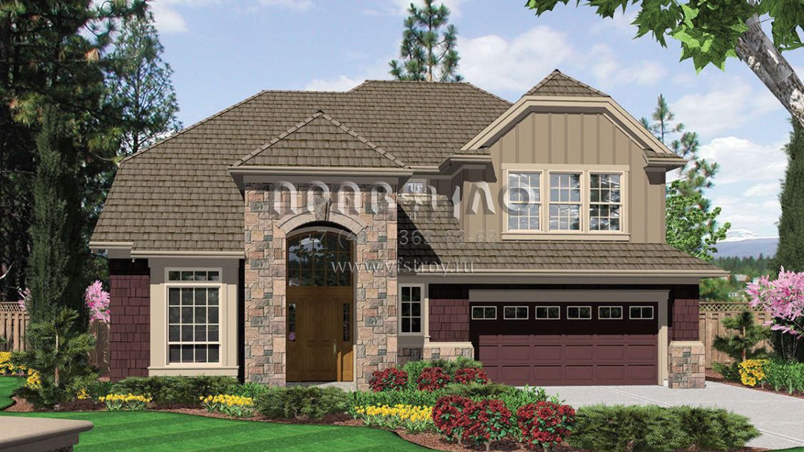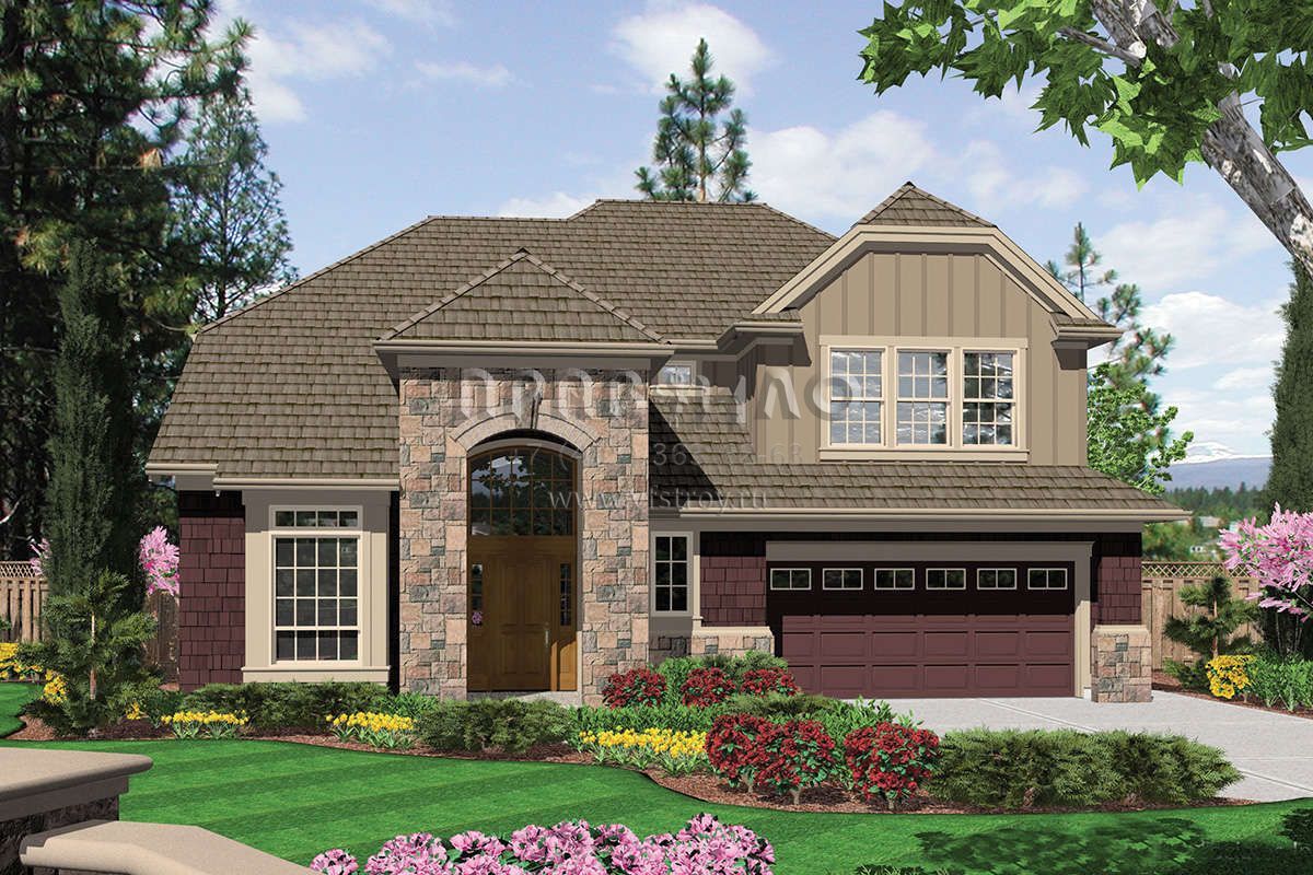 Проект двухэтажного дома с гаражом на две машины в стиле Ранчо S5-230 (2559-00380)