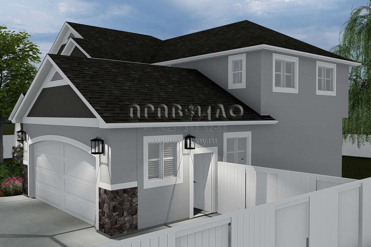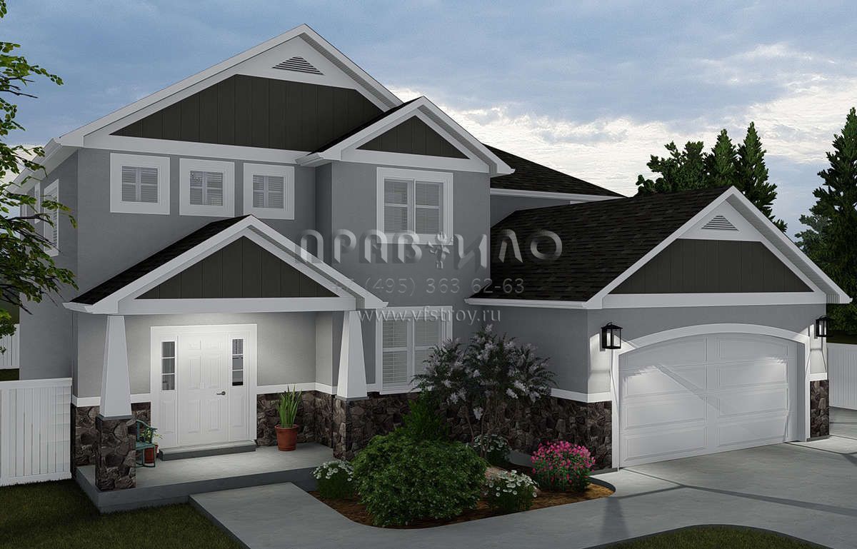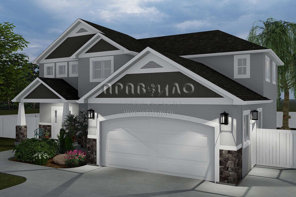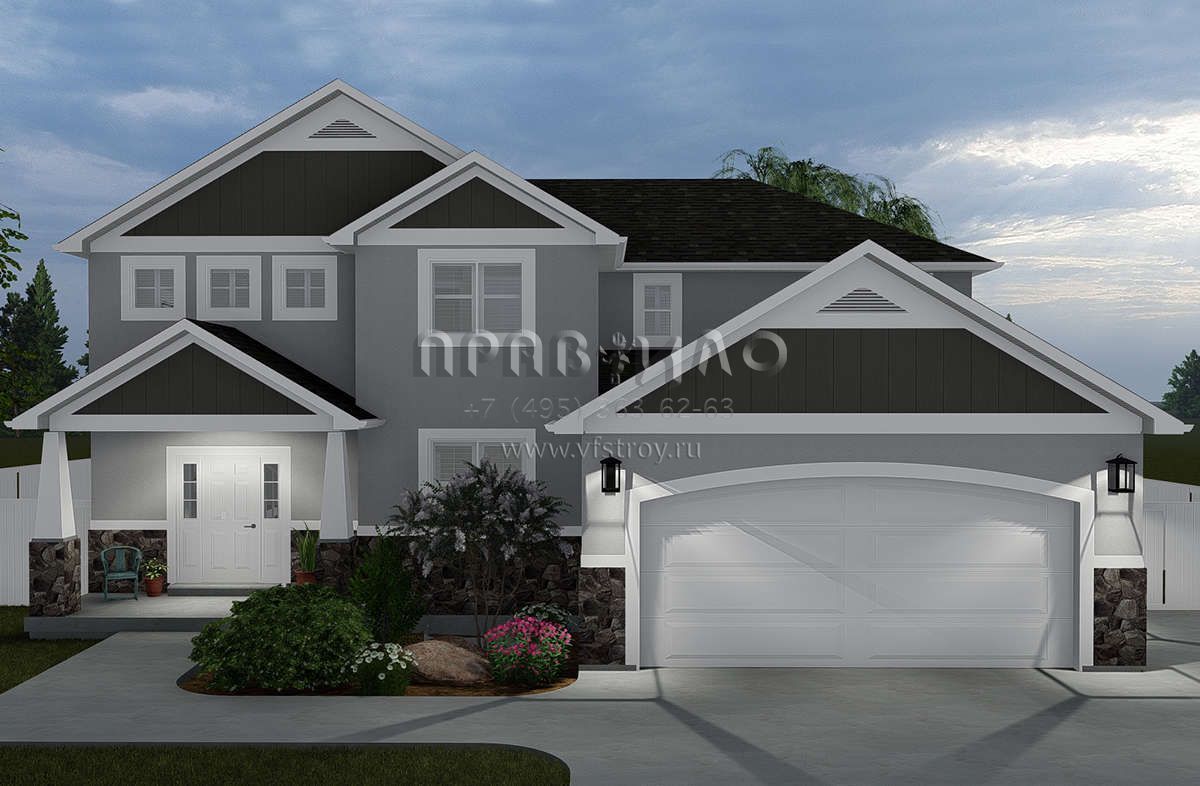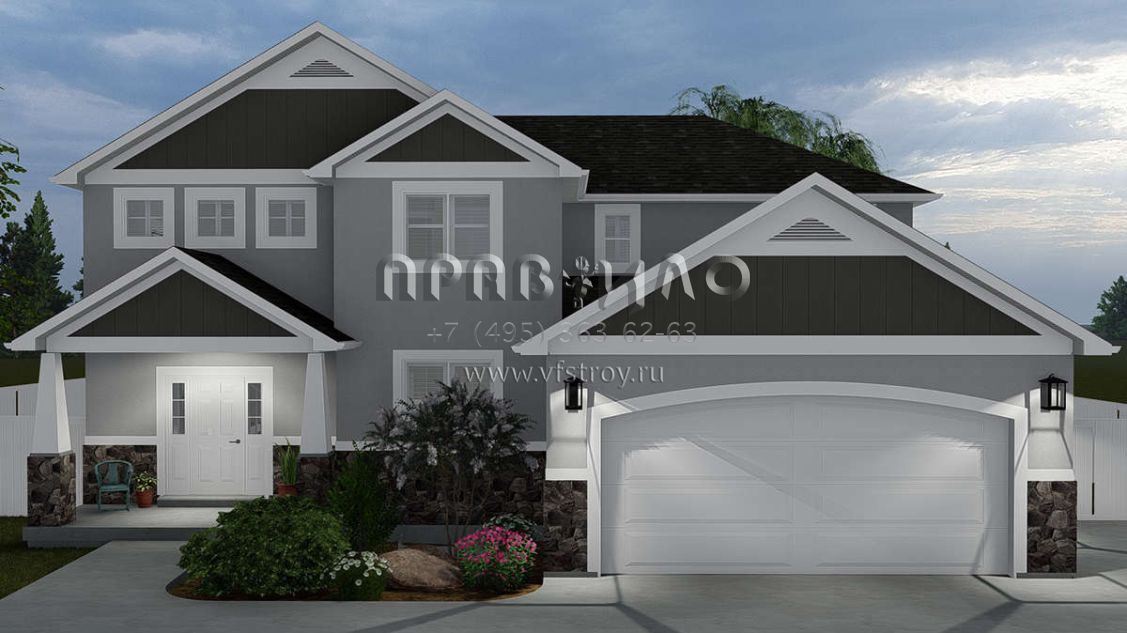 Проект двухэтажного дома с гаражом на две машины в американском стиле S5-230 (2802-00042)