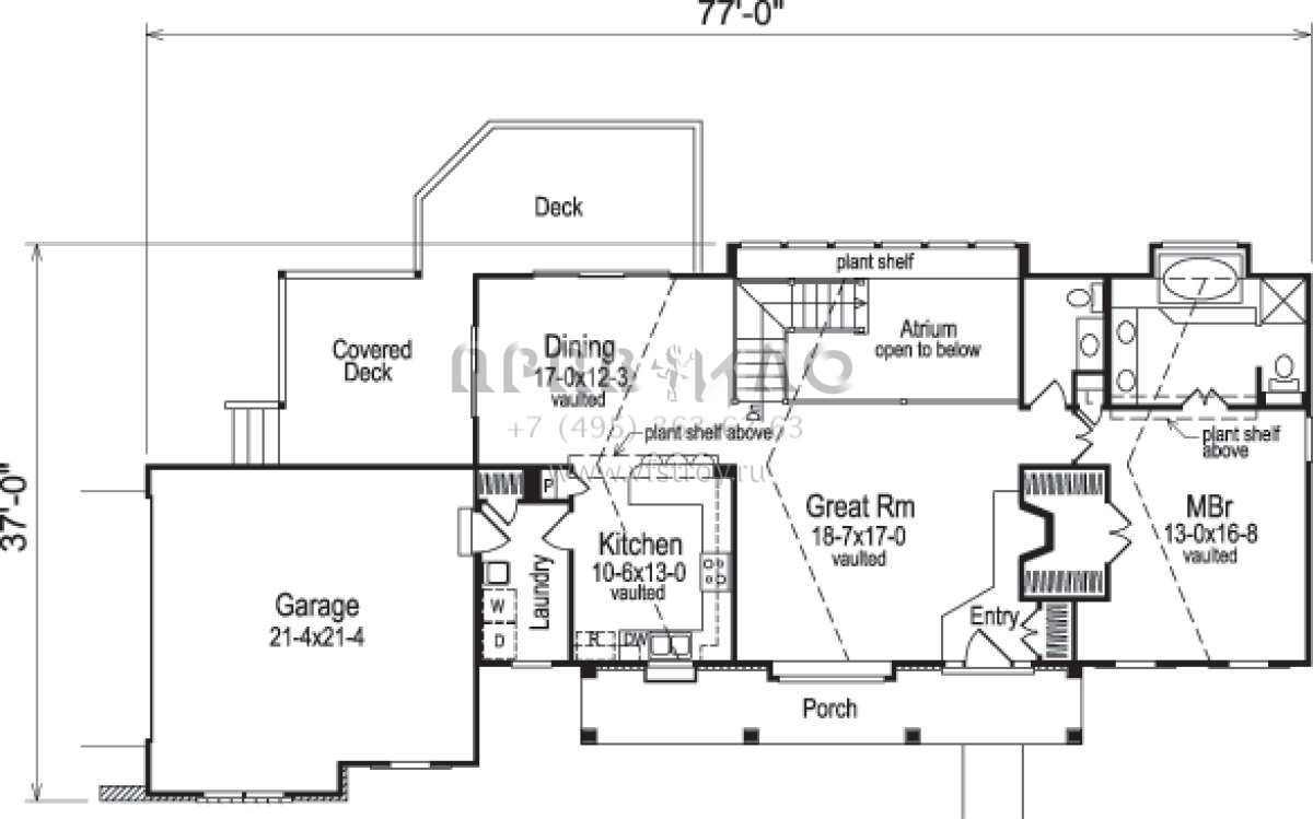 Проект одноэтажного дома с гаражом на две машины в стиле Ранчо S5-230 (5633-00028)