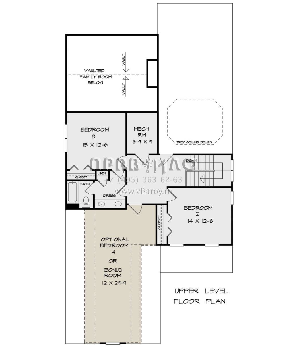 Поскольку этот проект разрабатывался иностранными архитекторами, для строительства дома требуется переработка проекта под действующие в России нормы. Данные визуализации проекта представлены для ознакомления с концепцией проекта. Проект разработан американским архитектурным бюро и представлен America's Best House Plans.
