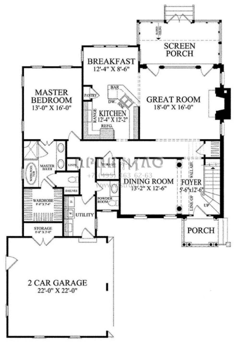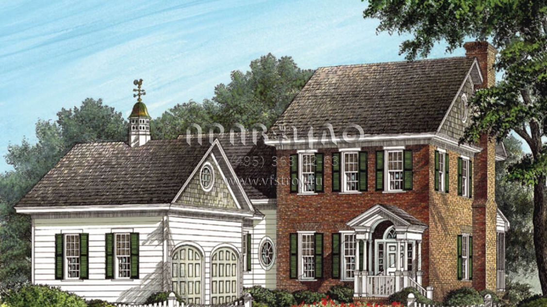 Проект двухэтажного дома с гаражом на две машины в стиле Ранчо S5-230 (7922-00031)