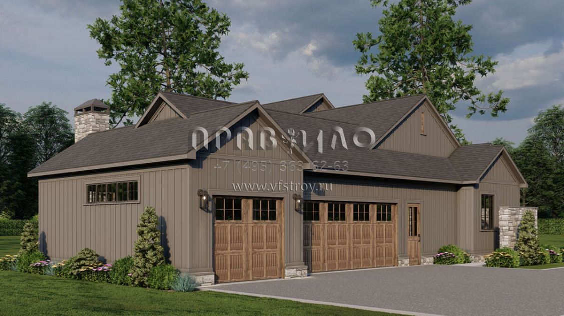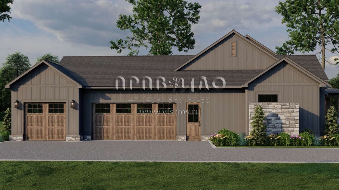 Проект одноэтажного дома с гаражом на три и более машин в современном стиле S5-230 (8318-00369)