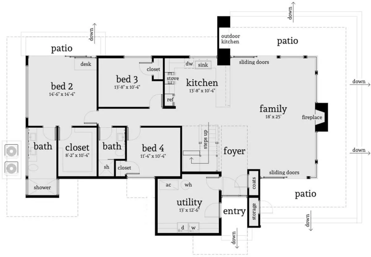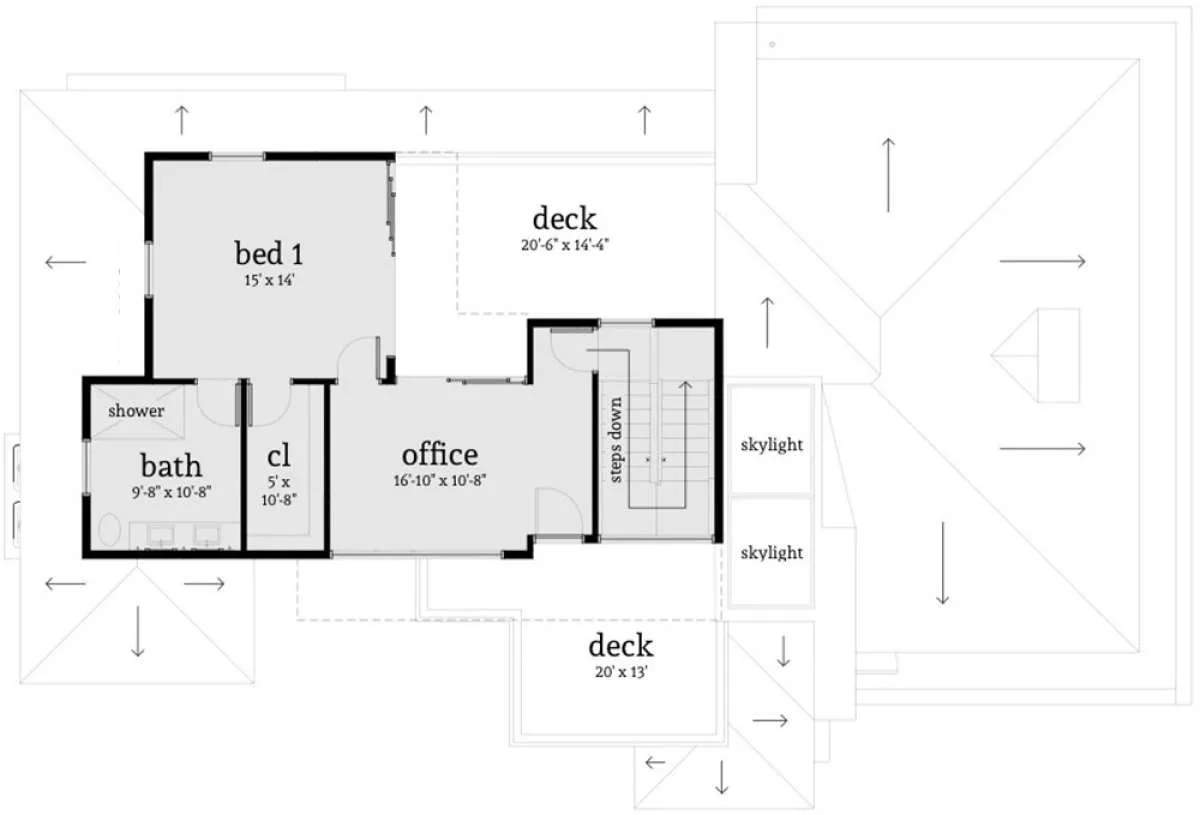S5-231 (028-00128) Это иностранный проект, для которого требуется адаптация под нормы, действующие в Российской Федерации. Вы видите проект дома в современном стиле. В этом доме сочетаются черты сельской постройки и аскетичность лофта. Внутри жильцы смогут проводить время с максимальным комфортом. Обратим внимание, что сейчас на планировках все размеры представлены в футах. Для перевода в метры вам необходимо значение в футах умножить на 0,3048.