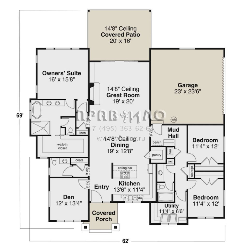 Проект одноэтажного дома с гаражом на две машины в современном стиле S5-231 (035-01066)