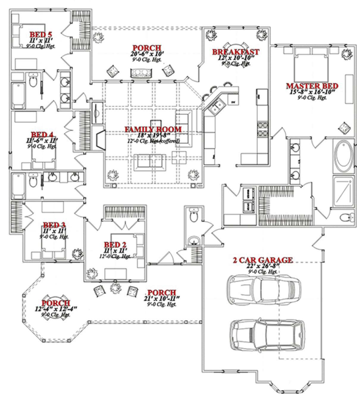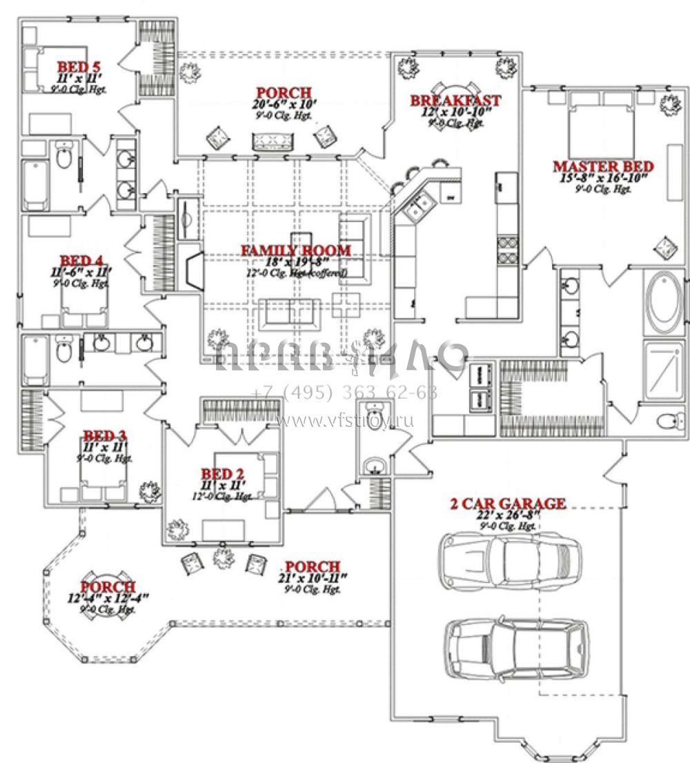 Проект одноэтажного дома с гаражом на две машины в стиле Ранчо S5-231 (1070-00200)