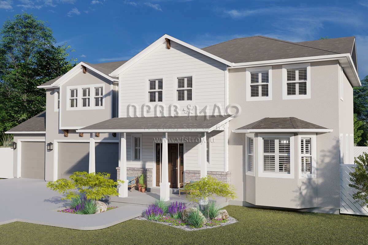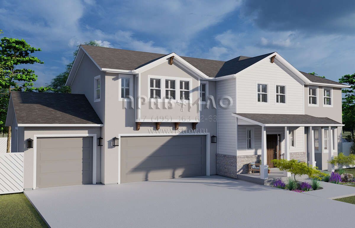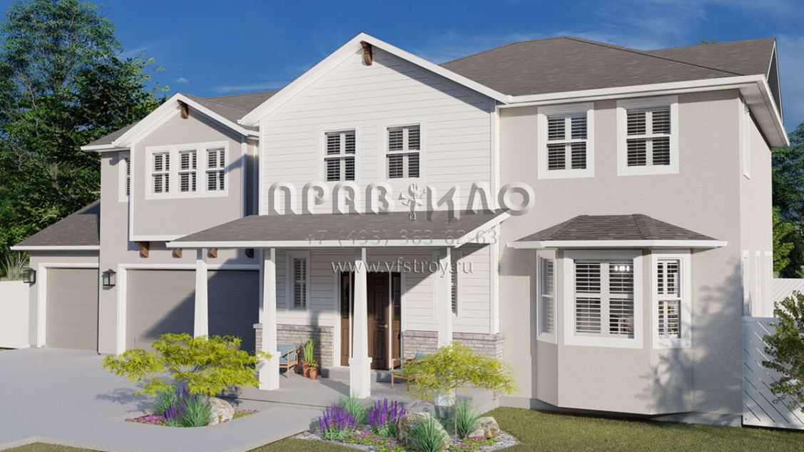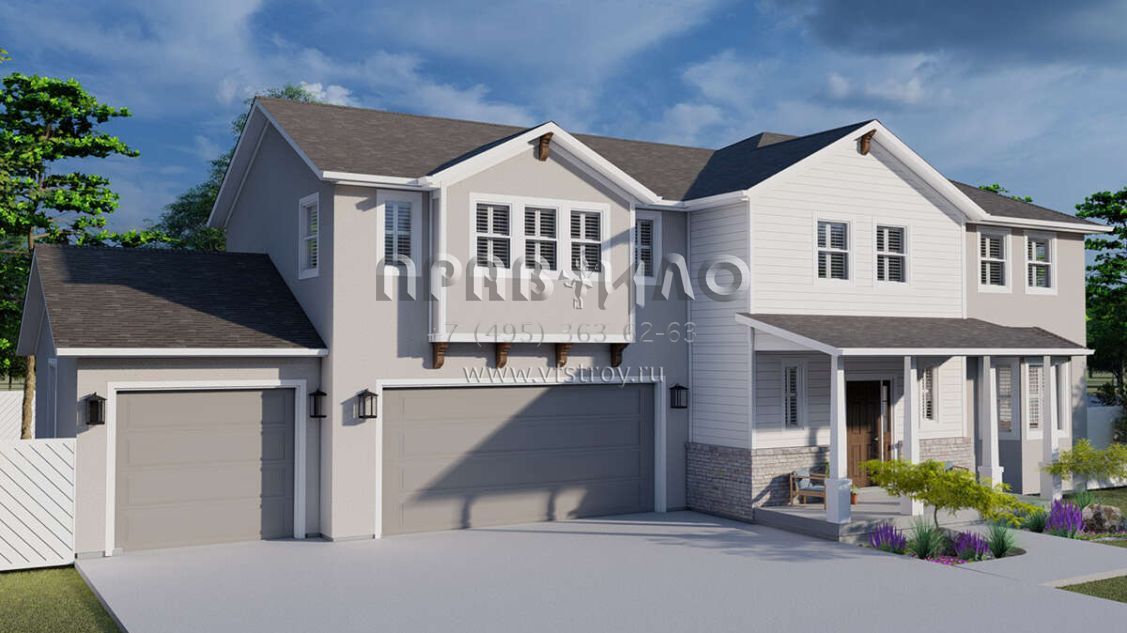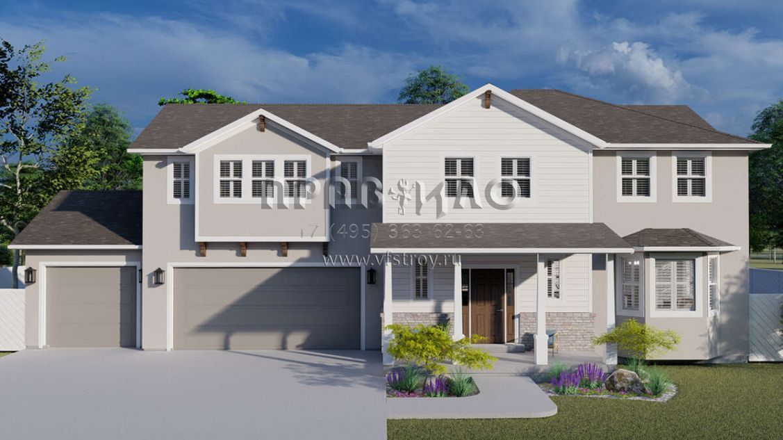 Проект двухэтажного дома с гаражом на три и более машин в стиле Ранчо S5-231 (2802-00008)