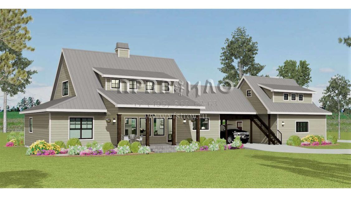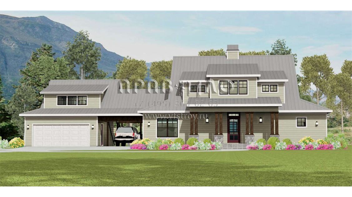 Проект двухэтажного дома с гаражом на две машины в стиле Ранчо S5-231 (3125-00014)