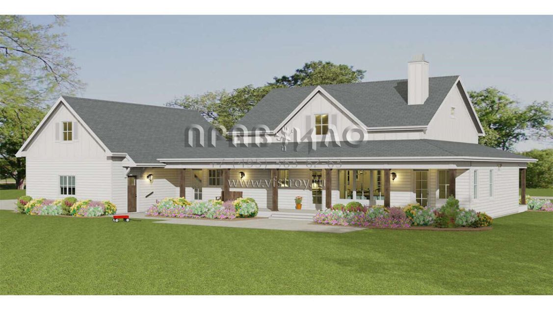 Проект двухэтажного дома с гаражом на три и более машин в стиле Ранчо S5-231 (3125-00030)