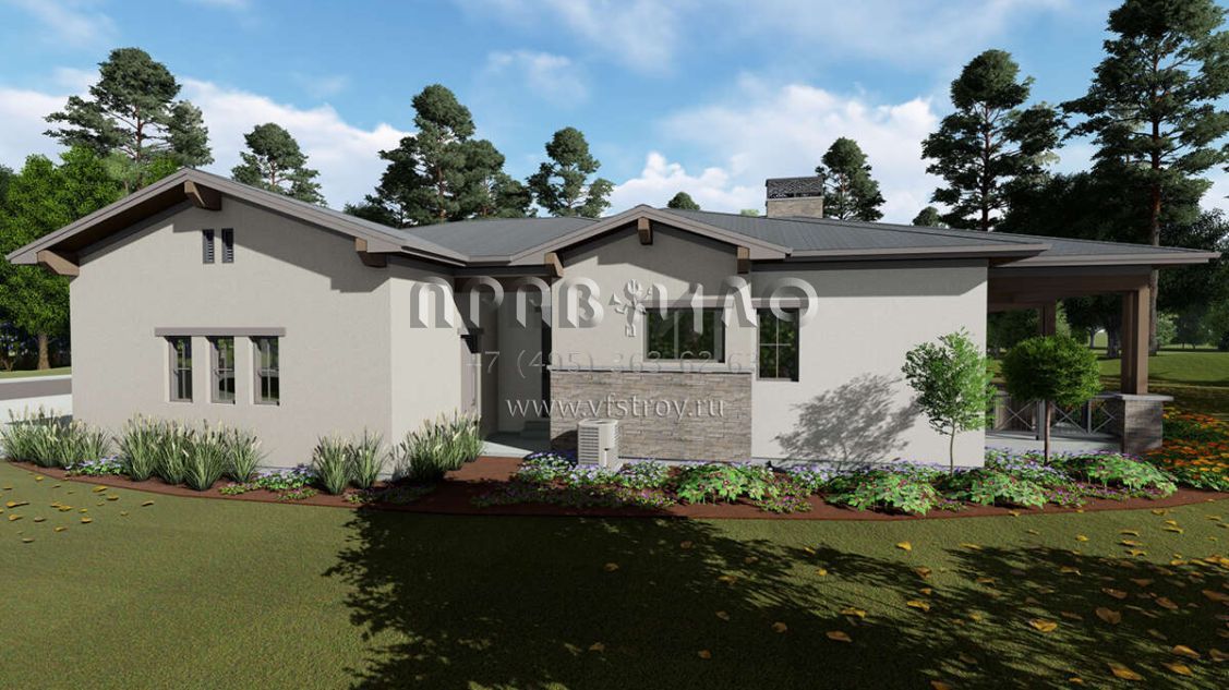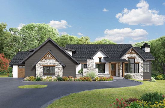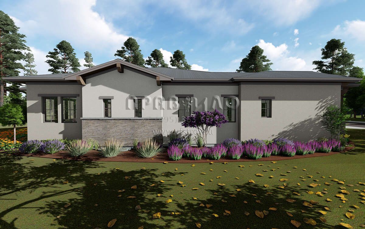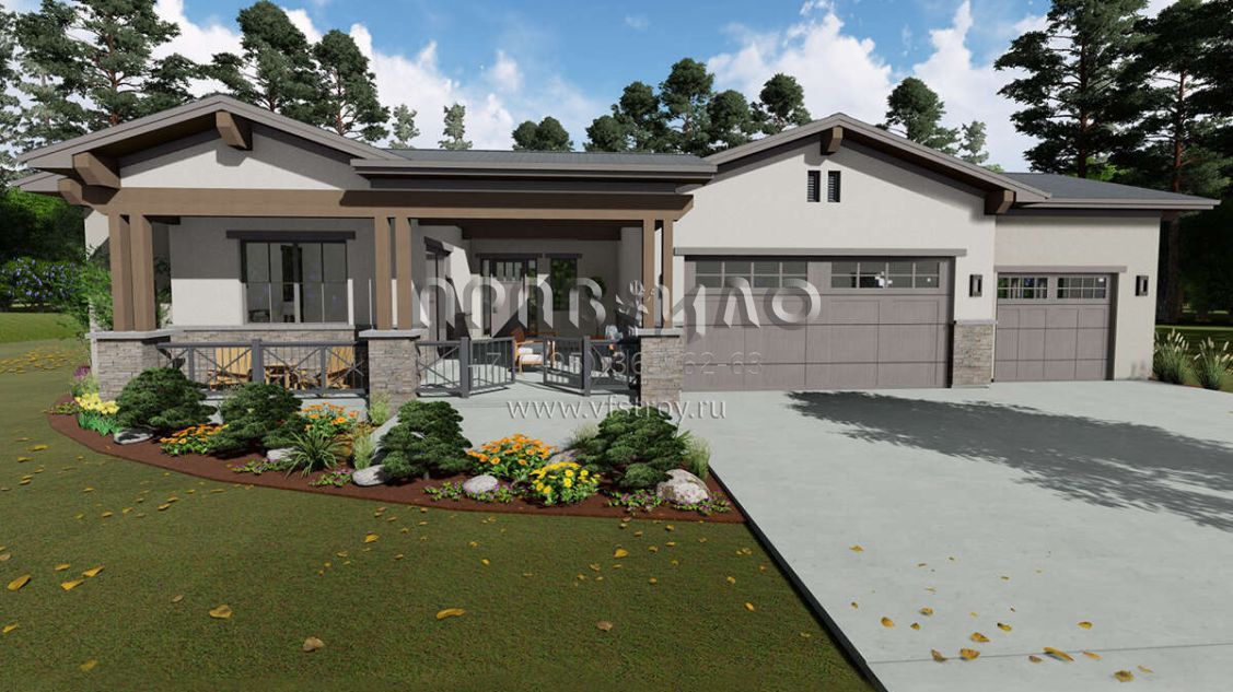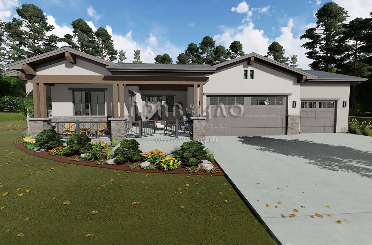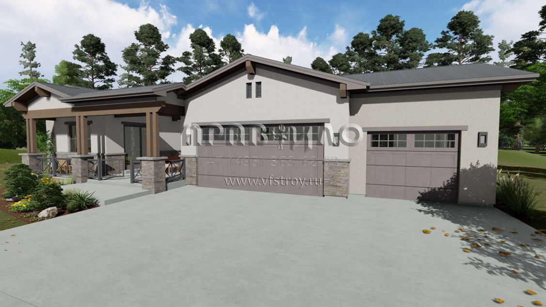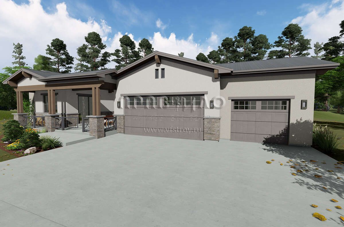 Проект одноэтажного дома с гаражом на три и более машин в американском стиле S5-231 (425-00031)