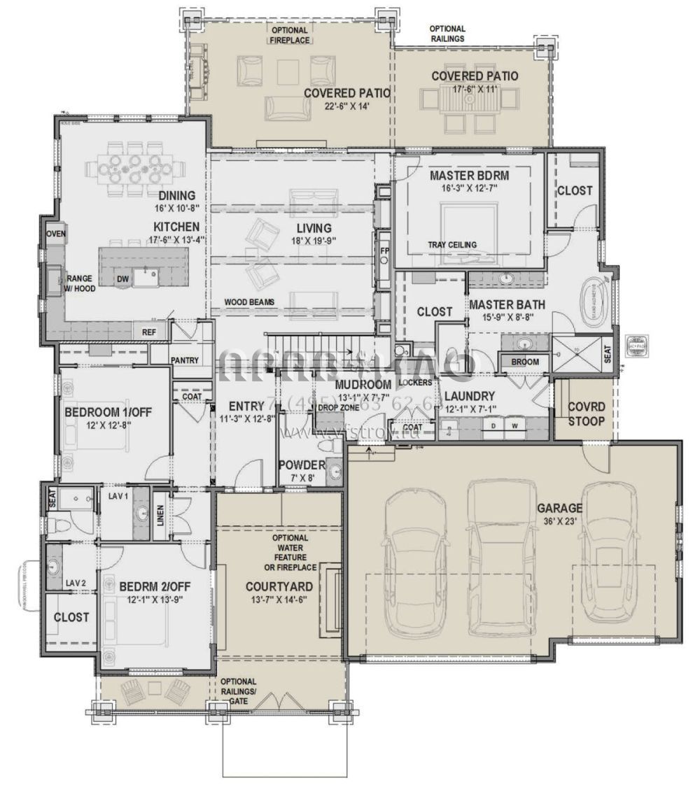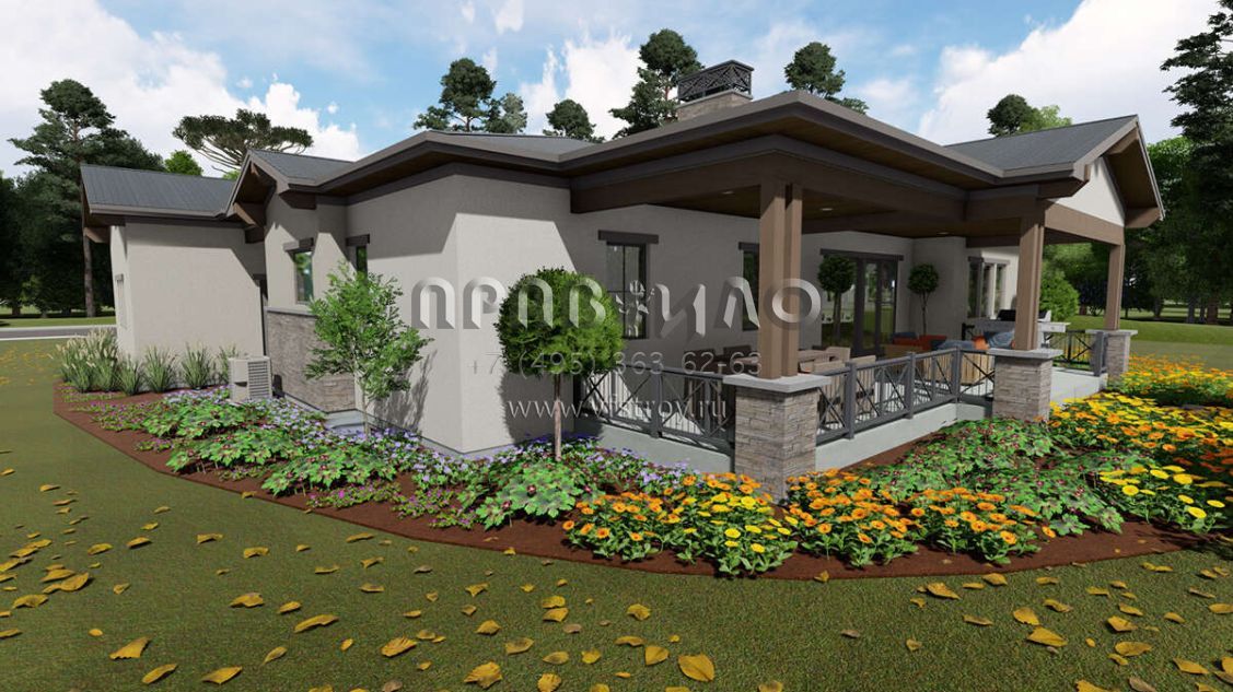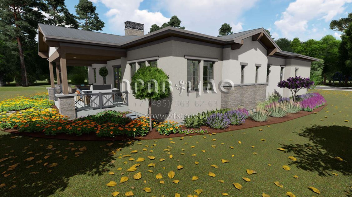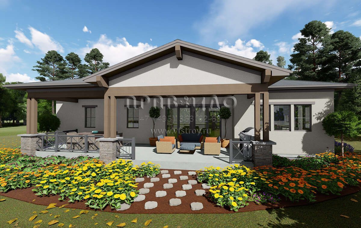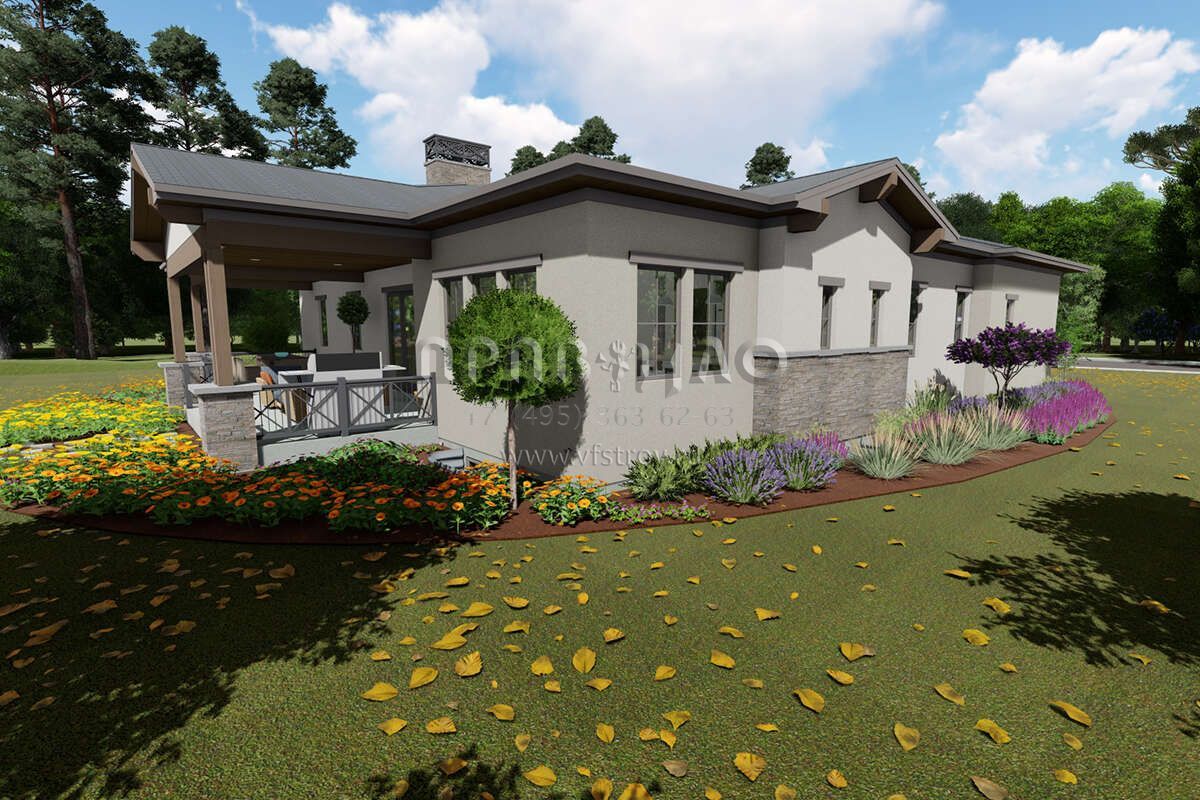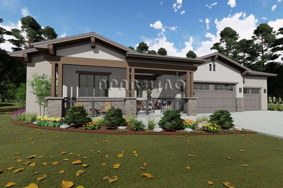 Проект одноэтажного дома с гаражом на три и более машин в американском стиле S5-231 (425-00031)