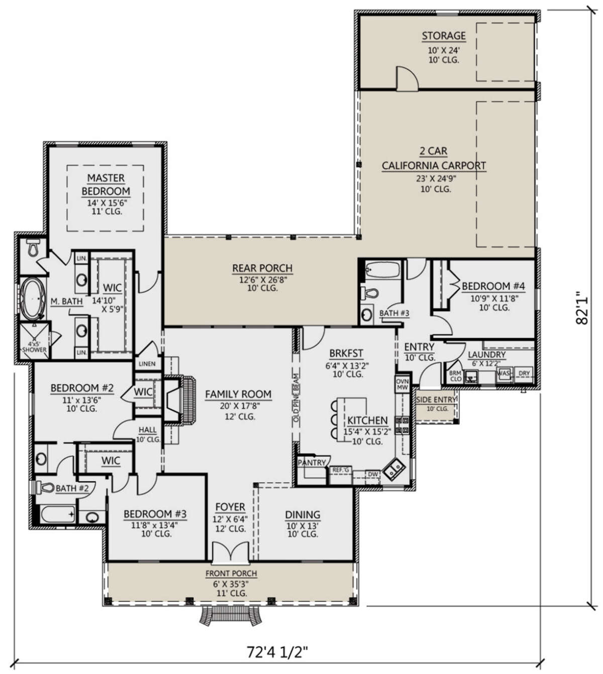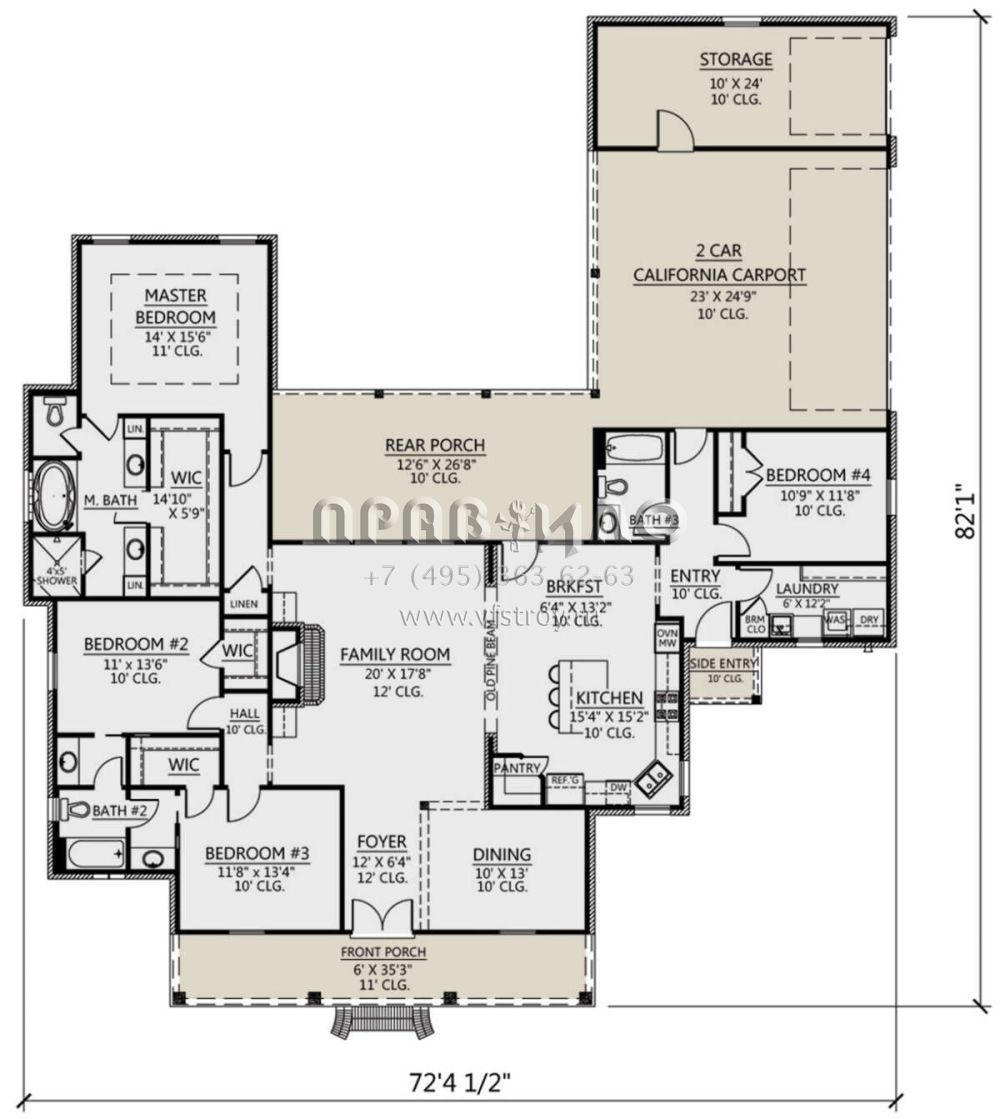 Проект одноэтажного дома с гаражом на три и более машин в стиле Ранчо S5-231 (4534-00025)