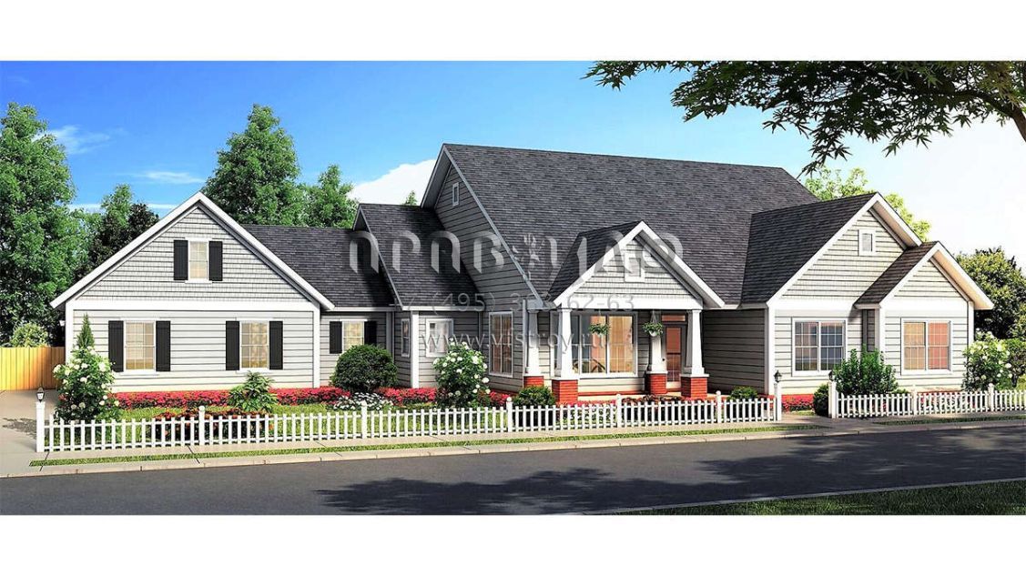 Проект одноэтажного дома с гаражом на три и более машин в американском стиле S5-231 (4848-00349)