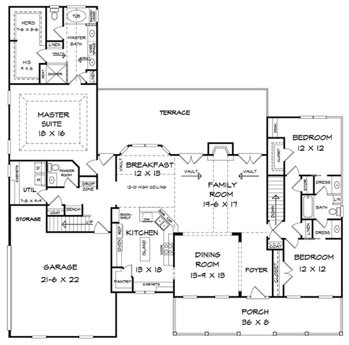 Проект одноэтажного дома с гаражом на две машины в стиле Ранчо S5-231 (6082-00045)