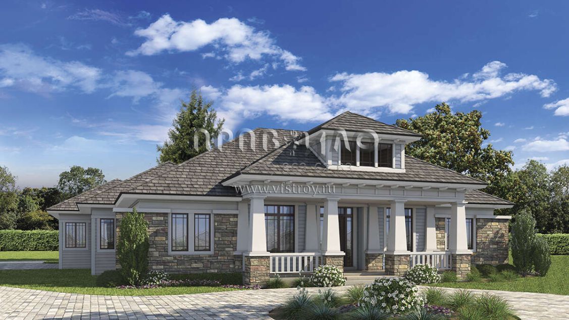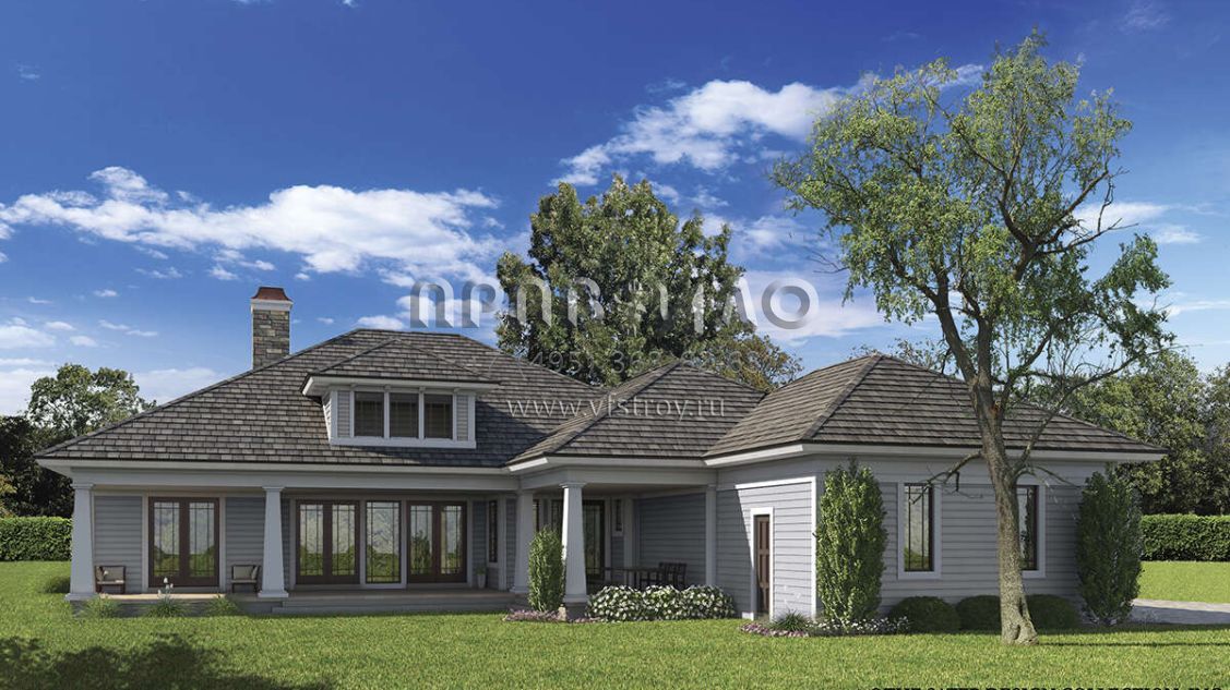 Проект одноэтажного дома с гаражом на три и более машин в американском стиле S5-231 (8436-00127)