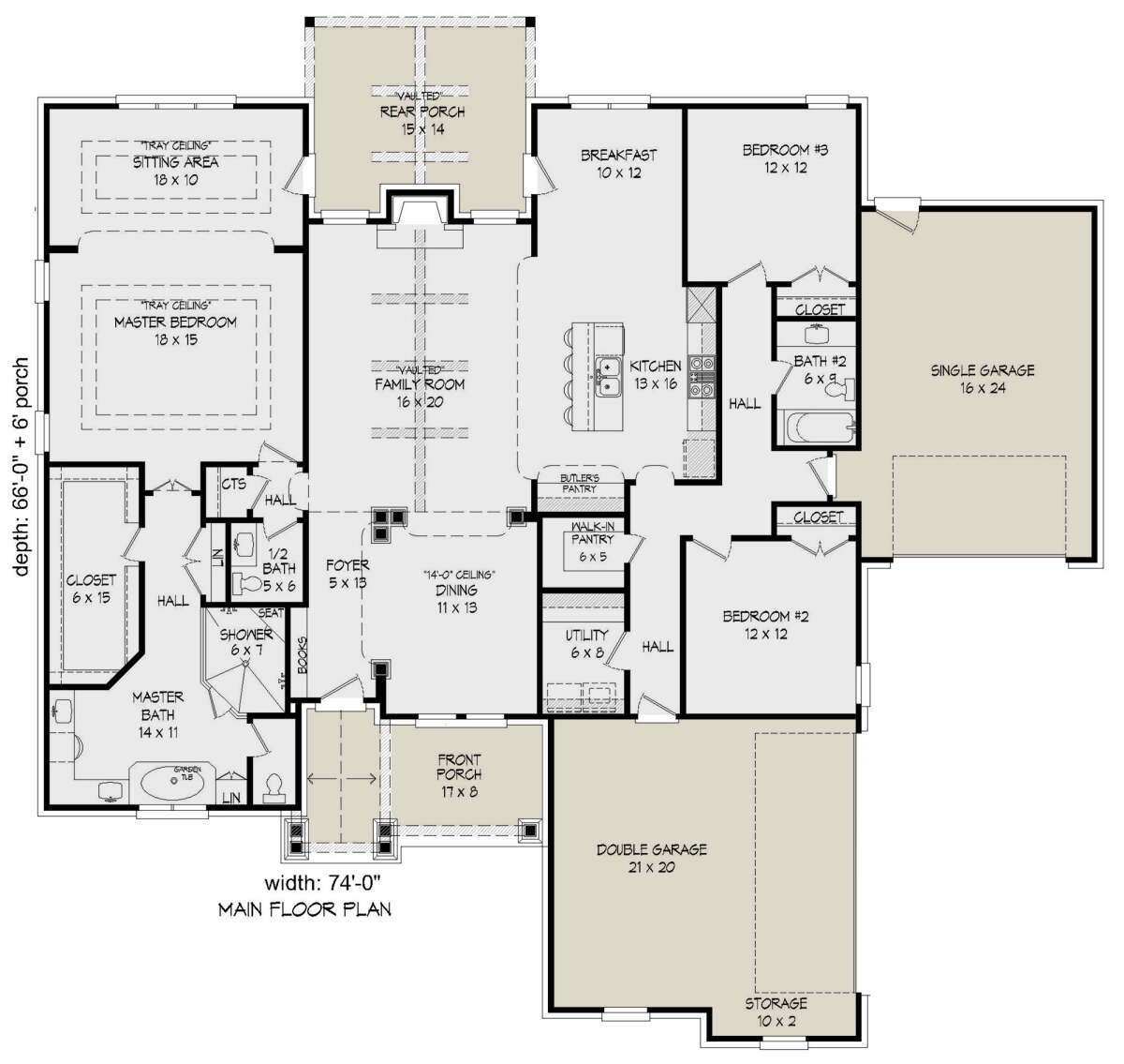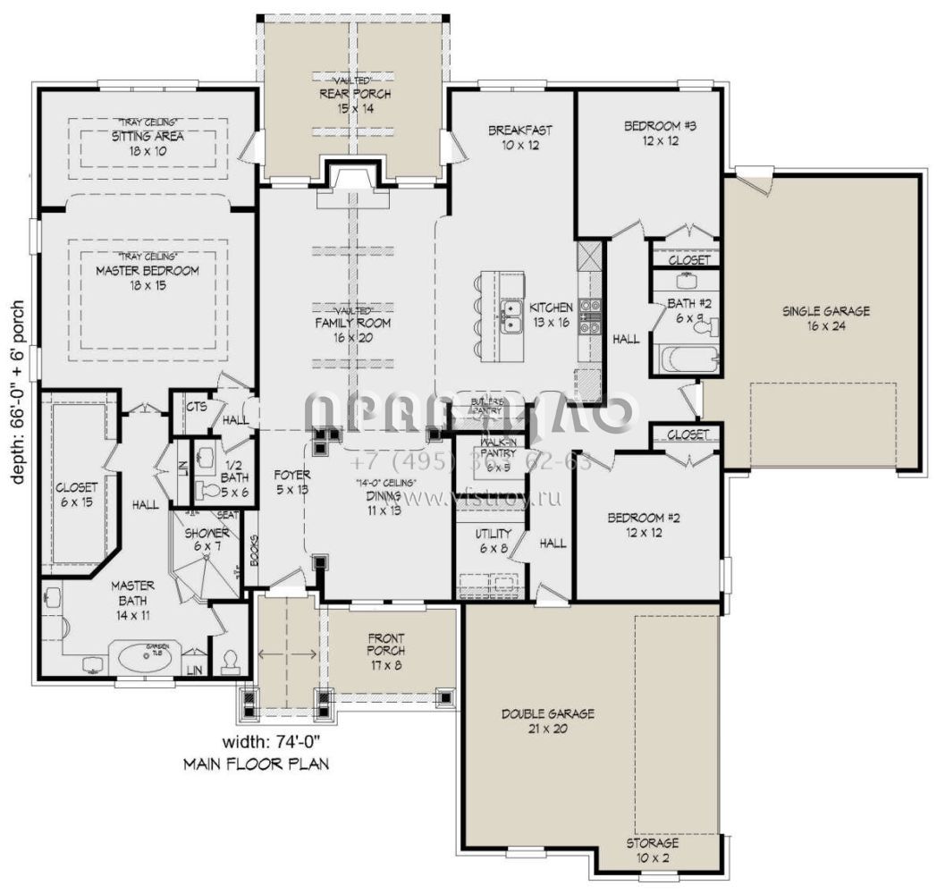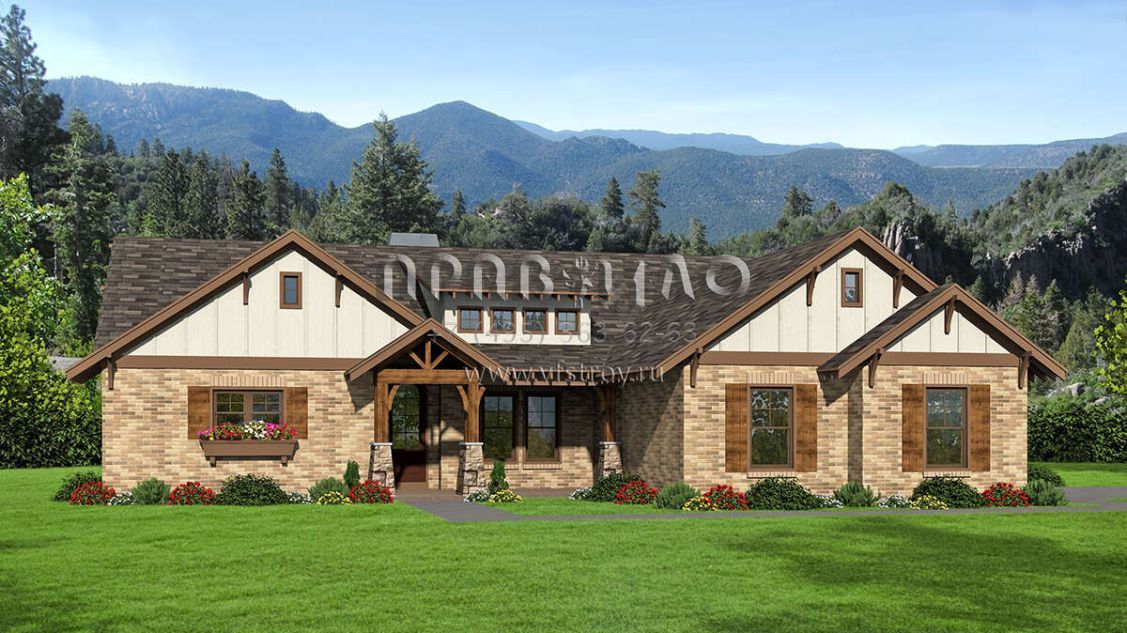 Проект одноэтажного дома с гаражом на три и более машин в американском стиле S5-231 (940-00245)