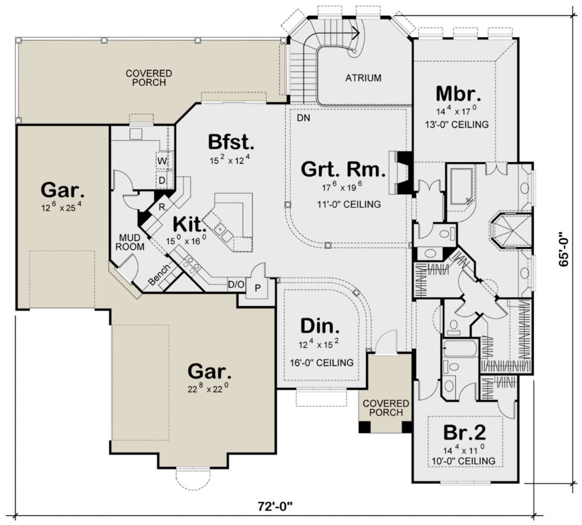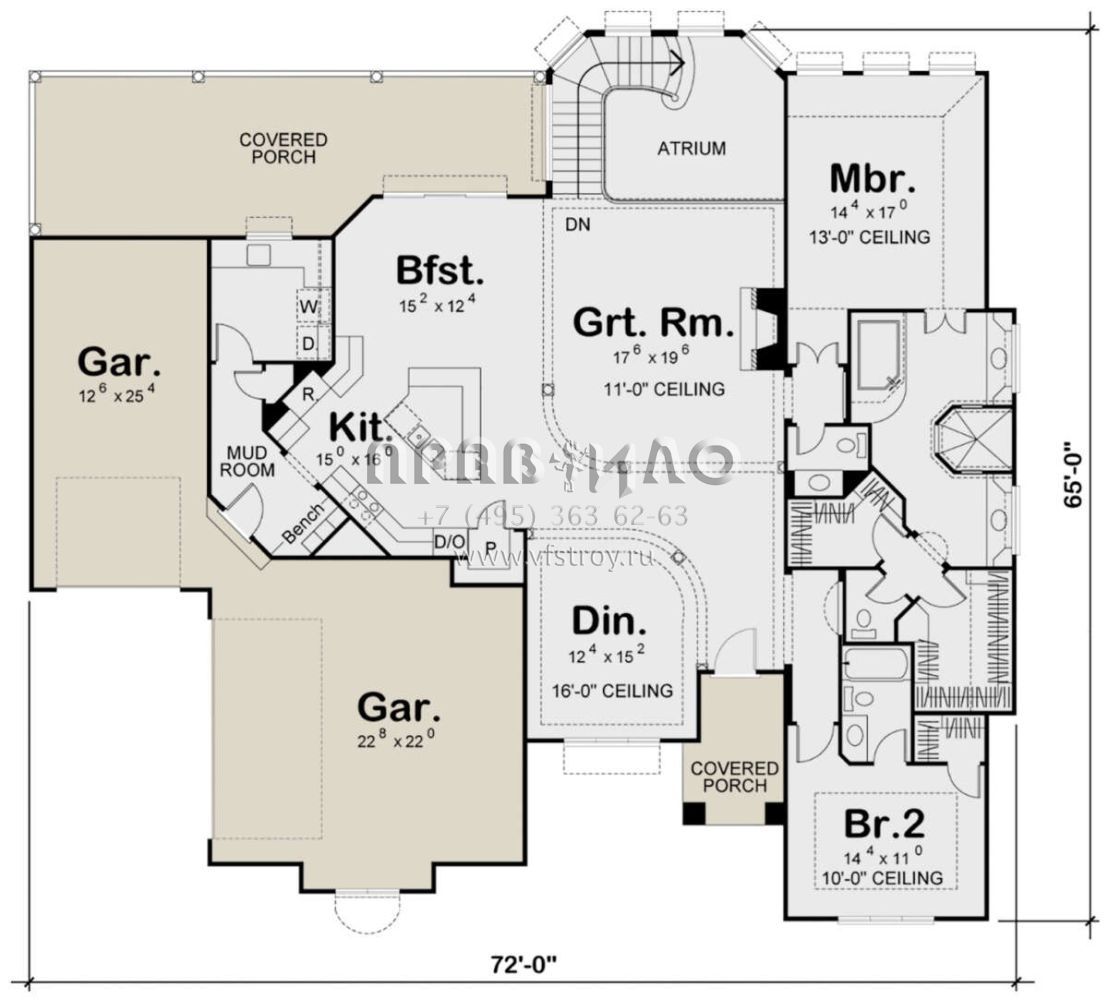 Проект одноэтажного дома с гаражом на три и более машин в прибрежном стиле S5-231 (963-00126)