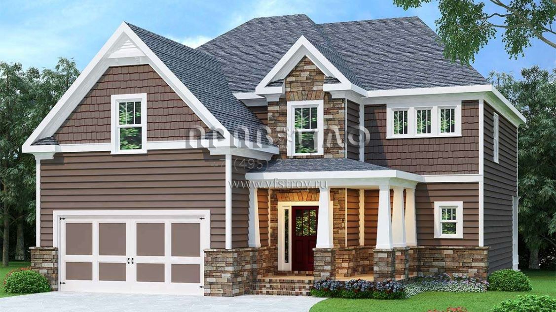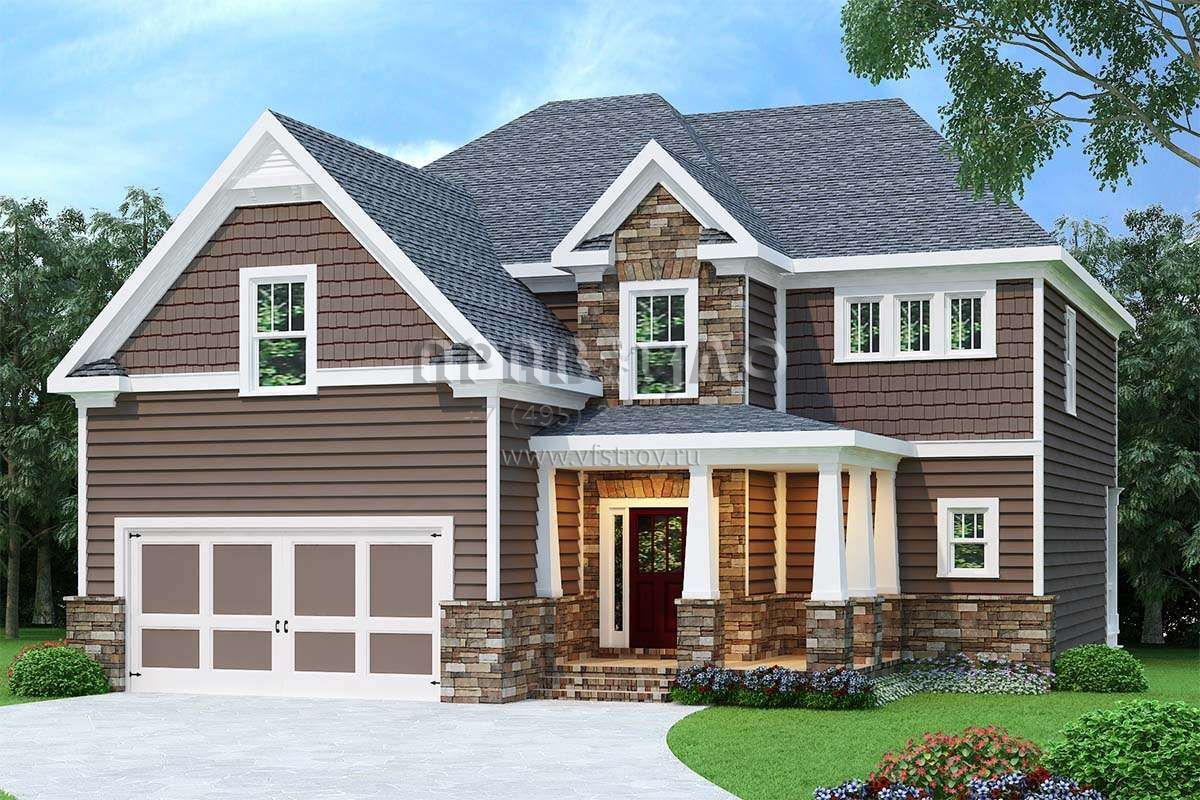 Проект двухэтажного дома с гаражом на две машины в американском стиле S5-232 (009-00101)