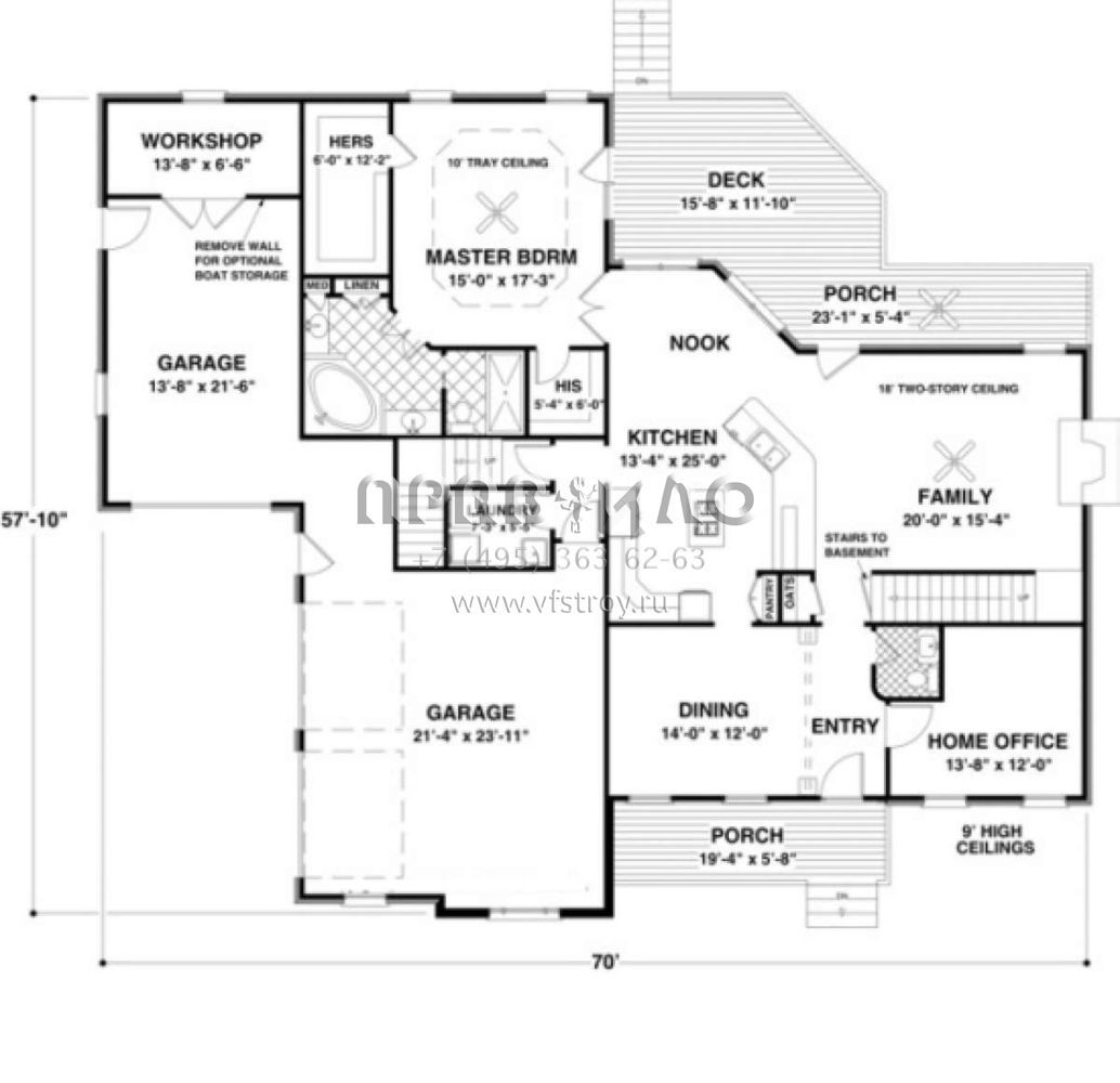 S5-232 (036-00119) Это иностранный проект, для которого требуется адаптация под нормы, действующие в Российской Федерации. Вы видите проект дома в американском стиле. В этом доме сочетаются черты сельской постройки и аскетичность лофта. Внутри жильцы смогут проводить время с максимальным комфортом. Обратим внимание, что сейчас на планировках все размеры представлены в футах. Для перевода в метры вам необходимо значение в футах умножить на 0,3048.