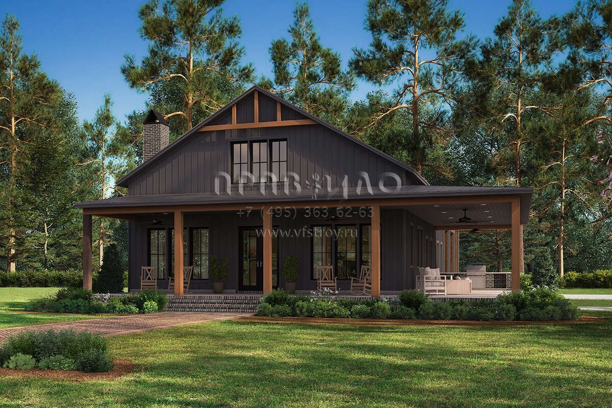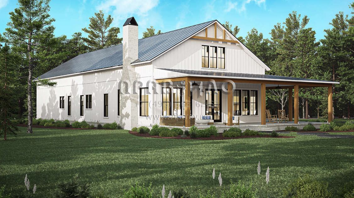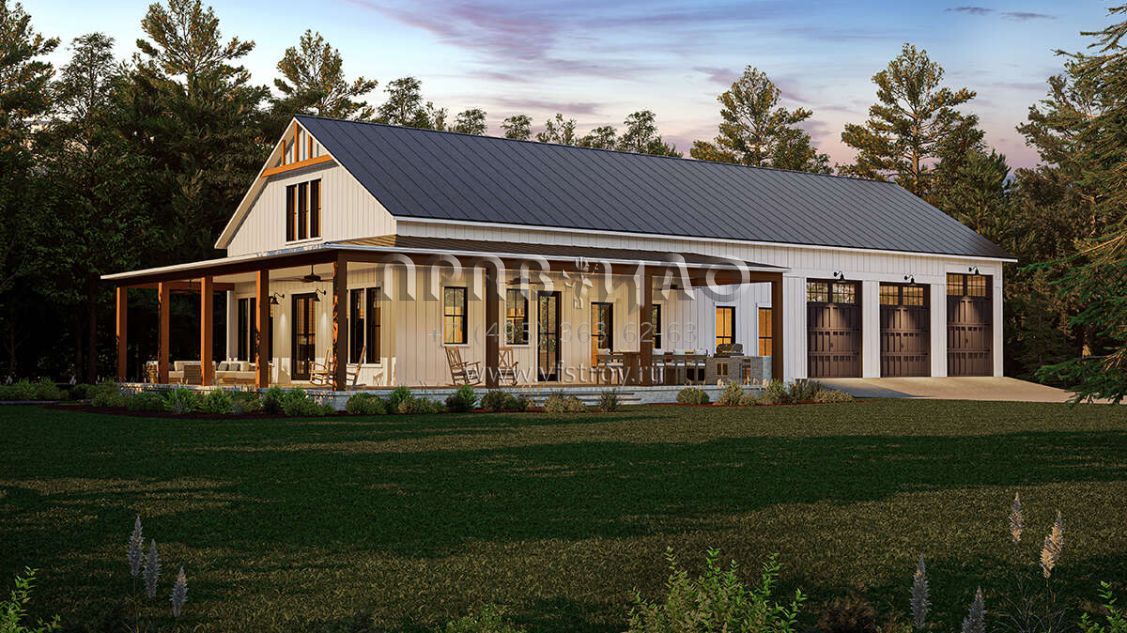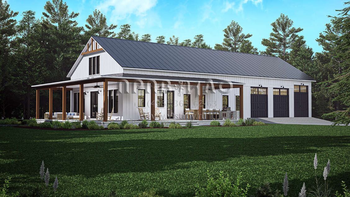 Проект одноэтажного дома с гаражом на три и более машин в стиле БарнХаус S5-232 (041-00343)
