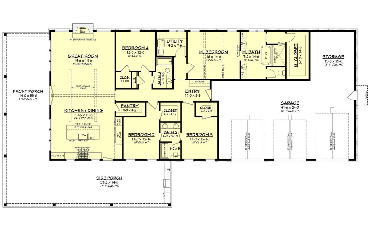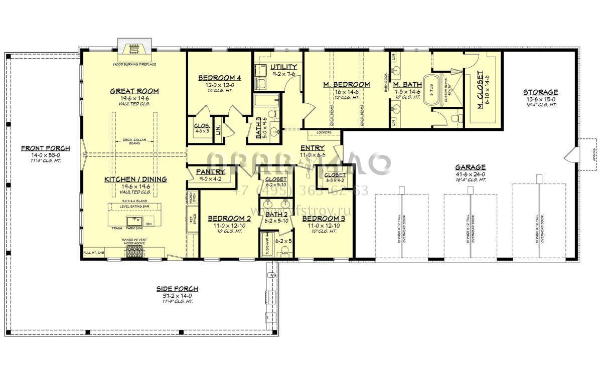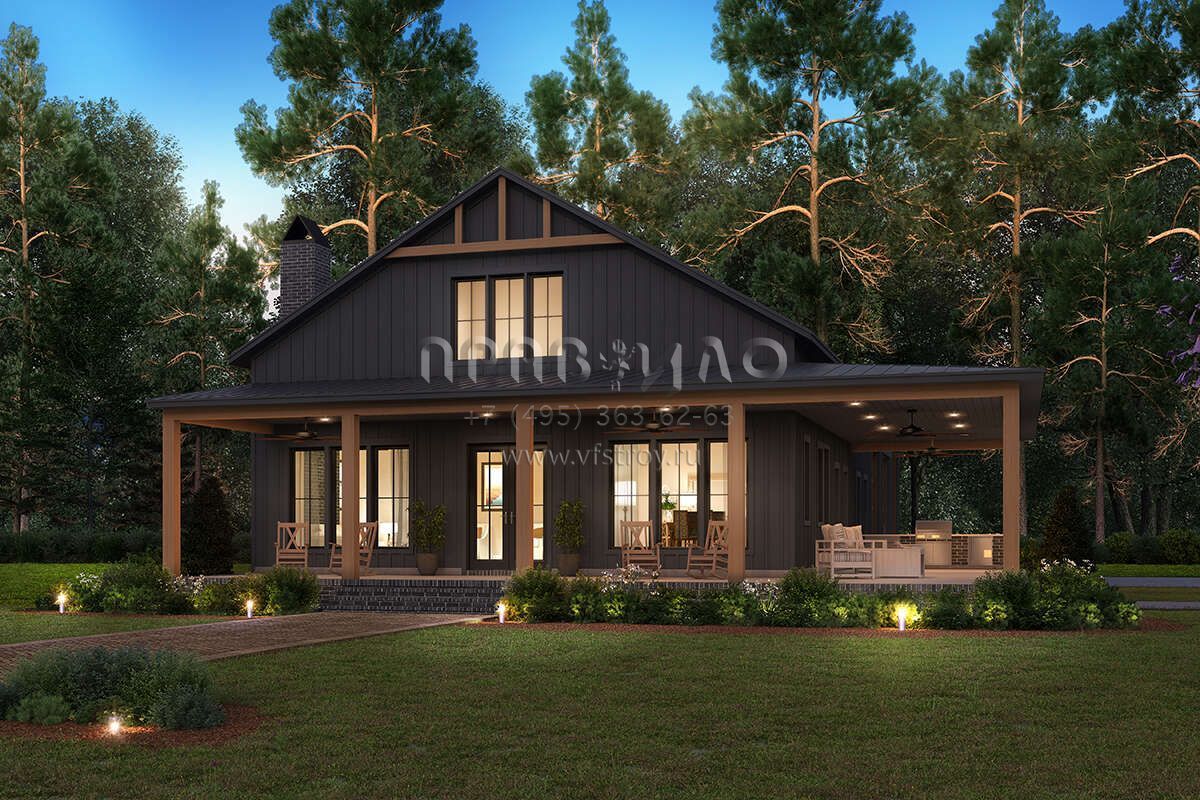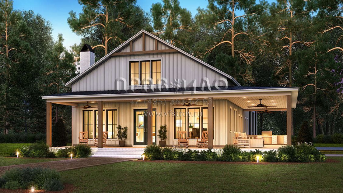Проект одноэтажного дома с гаражом на три и более машин в стиле БарнХаус S5-232 (041-00343)