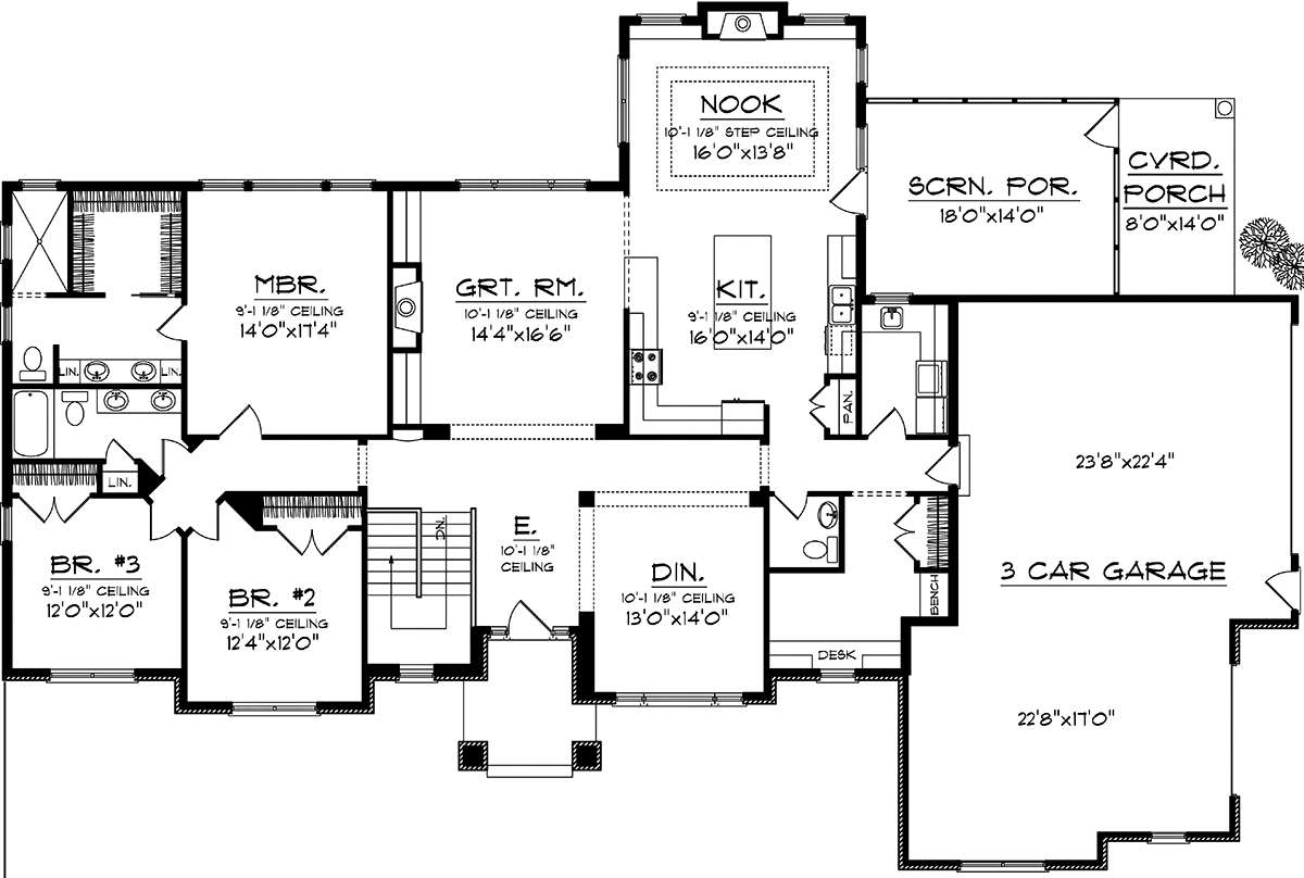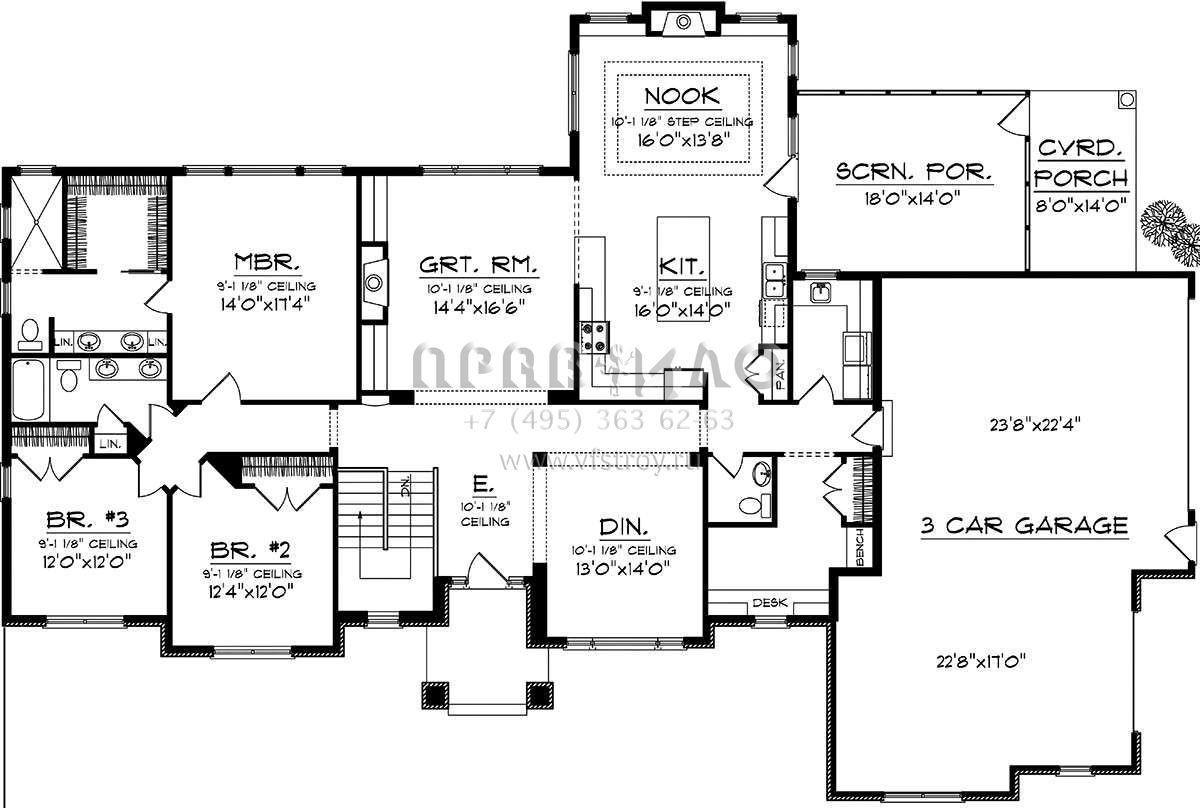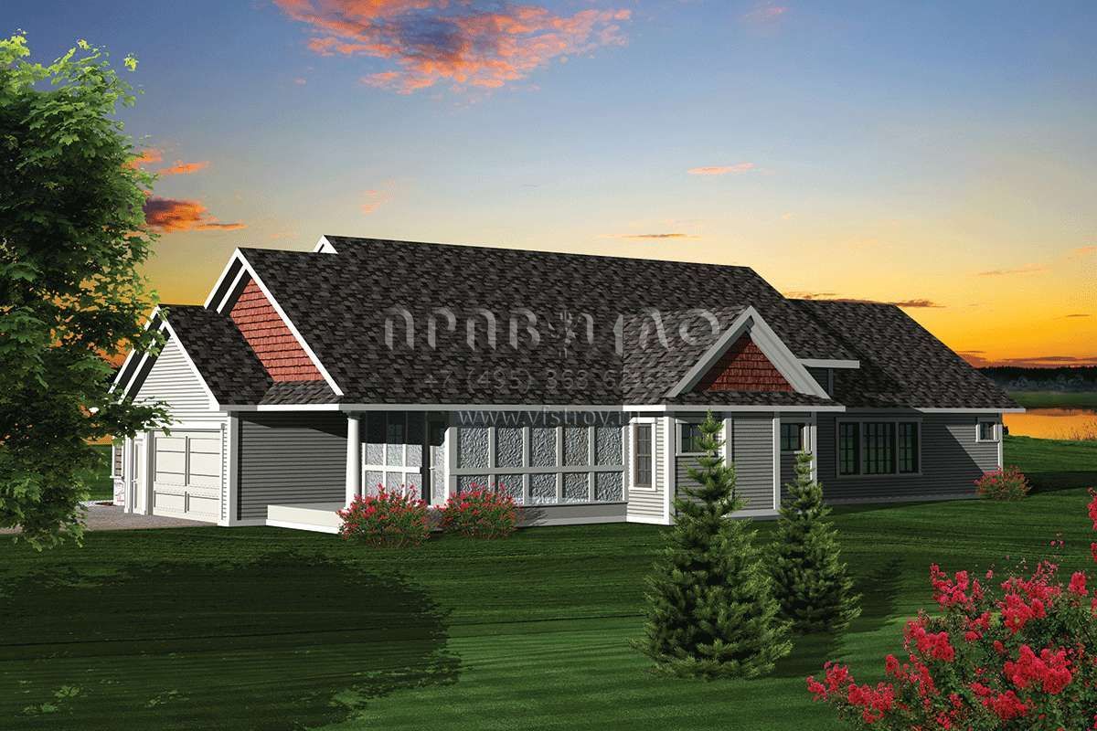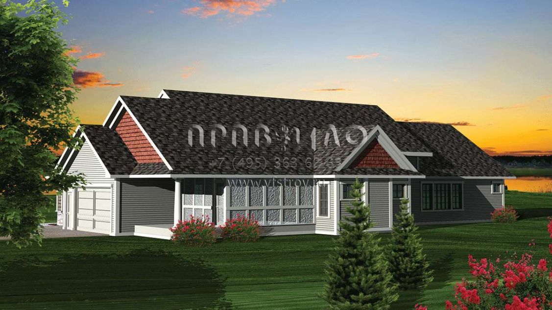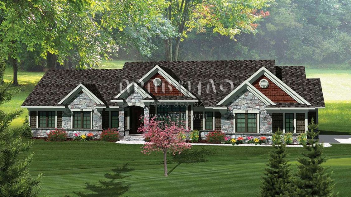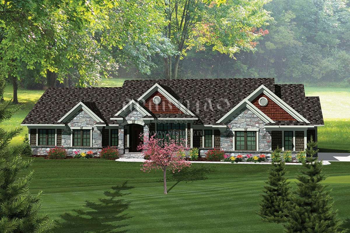 Проект одноэтажного дома с гаражом на три и более машин в стиле Ранчо S5-232 (1020-00241)