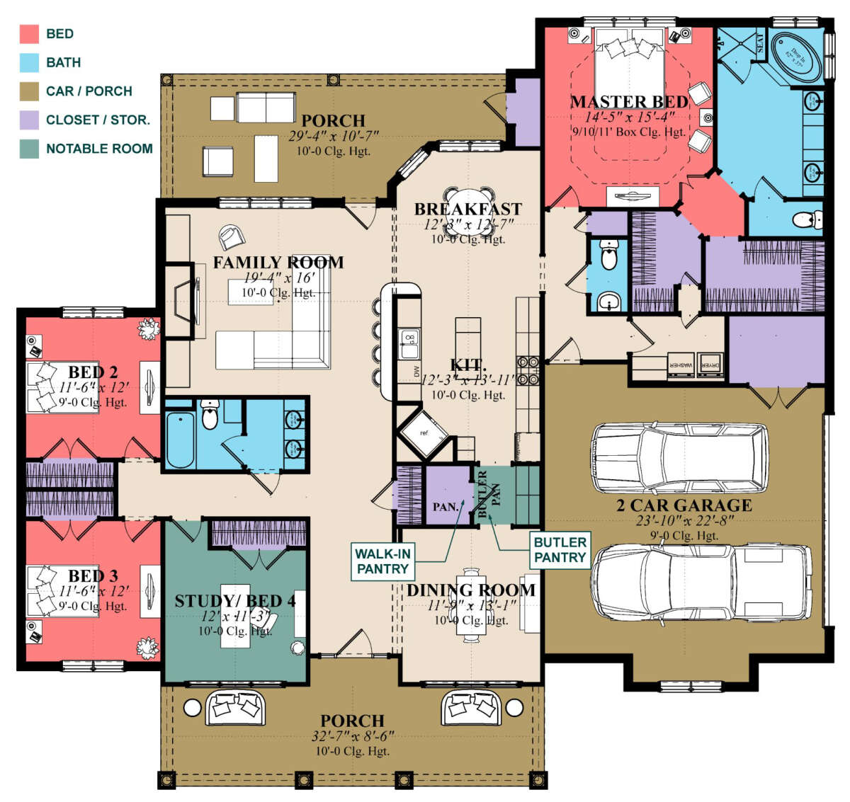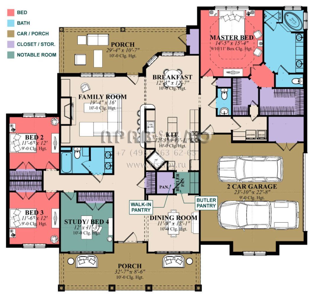 Проект одноэтажного дома с гаражом на две машины в стиле Ранчо S5-232 (1070-00118)