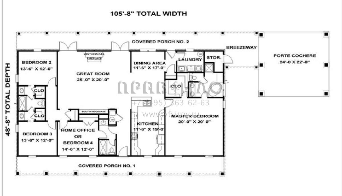 Проект одноэтажного дома с гаражом на две машины в стиле Ранчо S5-232 (1776-00078)