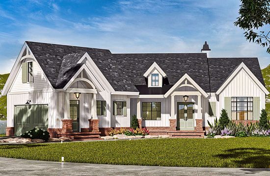 Проект двухэтажного дома с гаражом на три и более машин в американском стиле S5-232 (2559-00469)