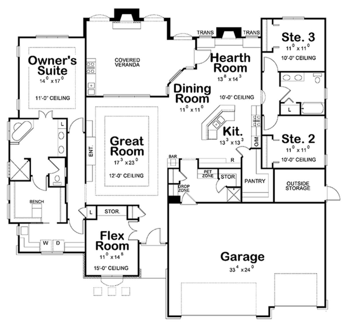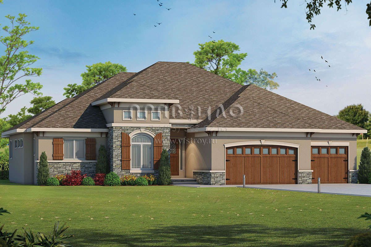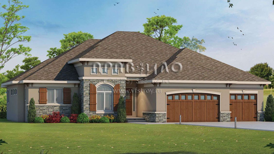 Проект одноэтажного дома с гаражом на три и более машин в английском стиле S5-232 (402-01445)